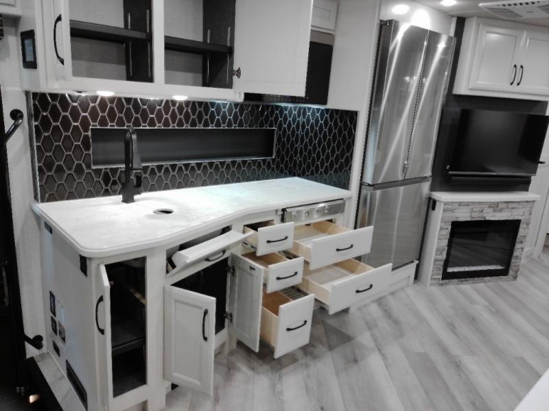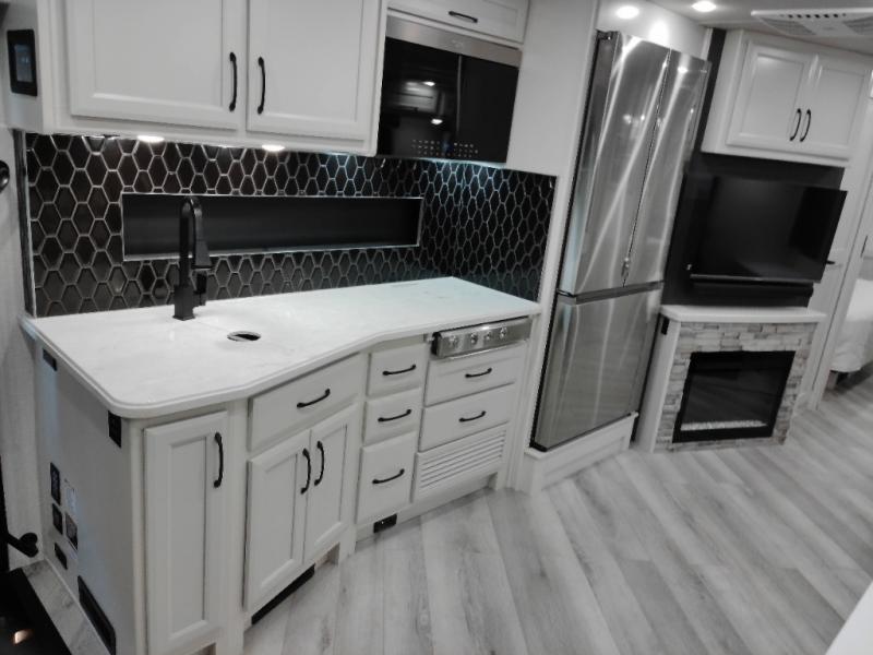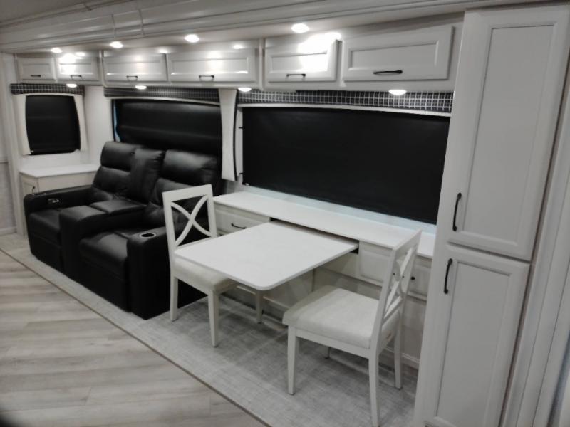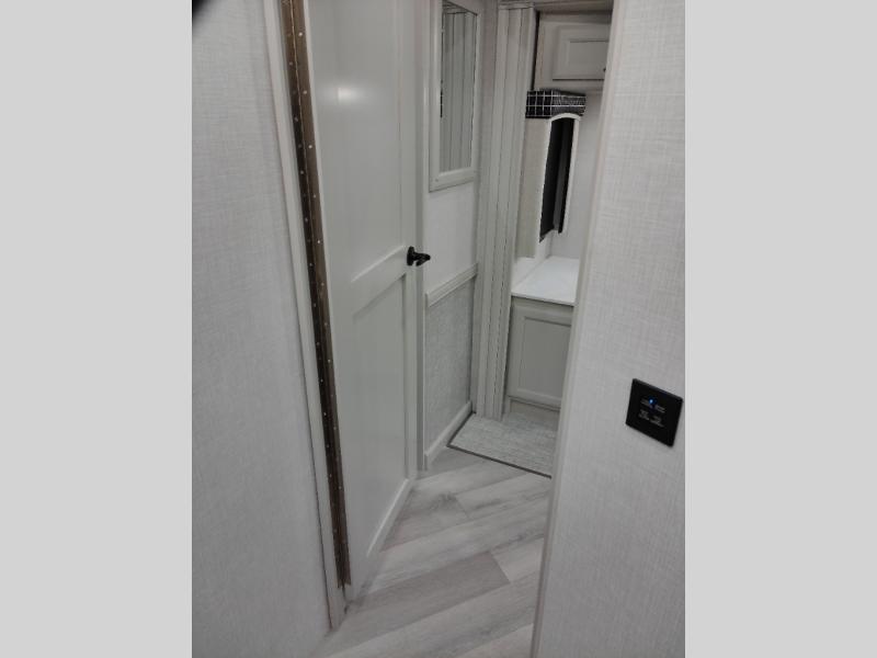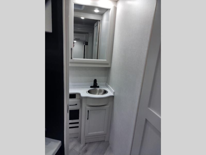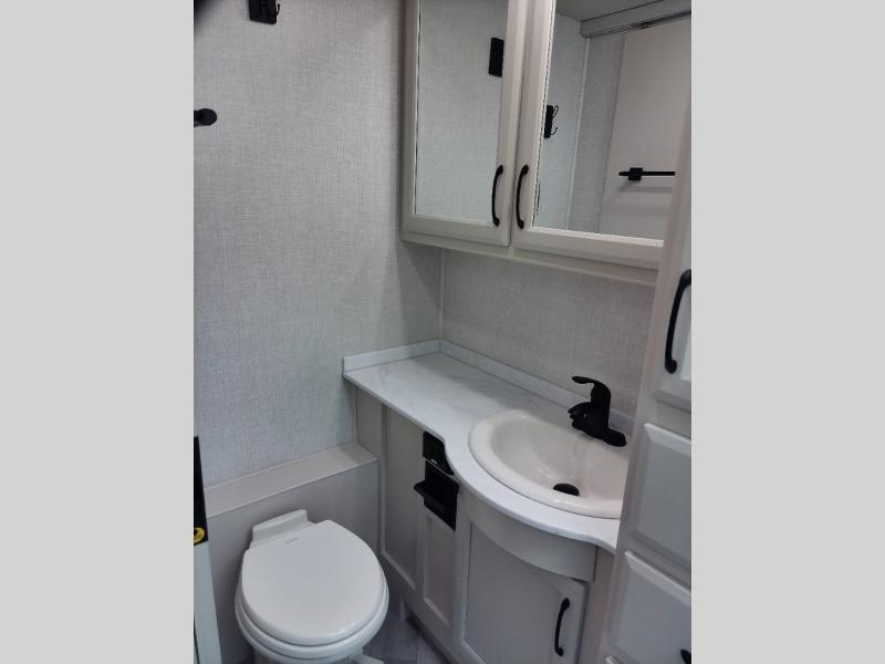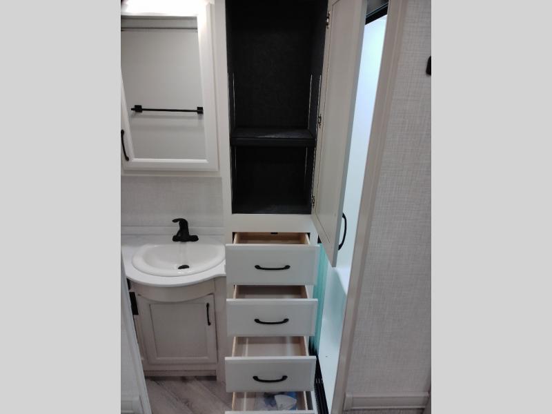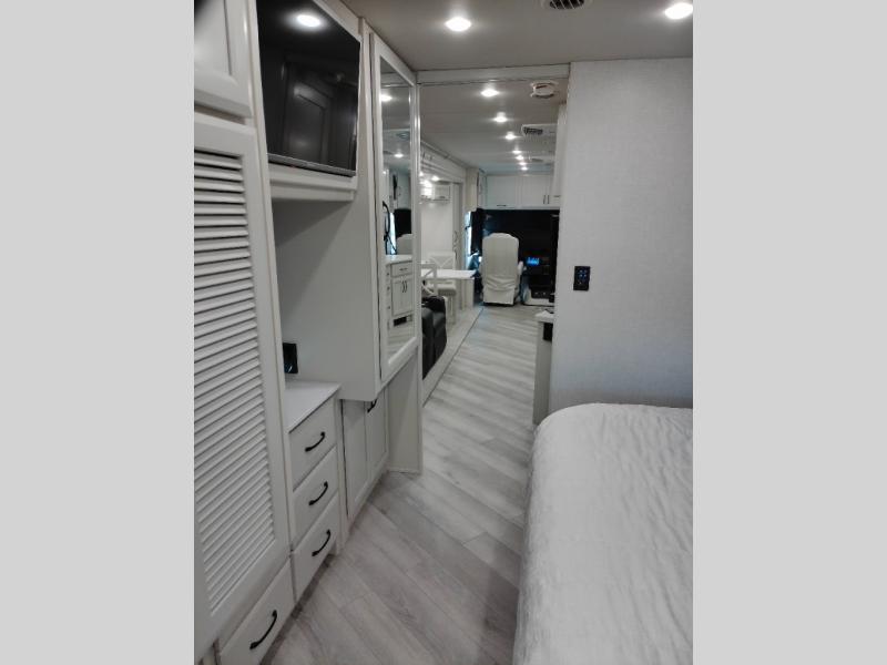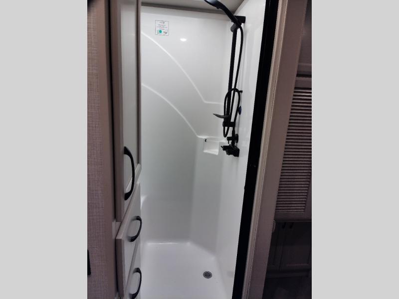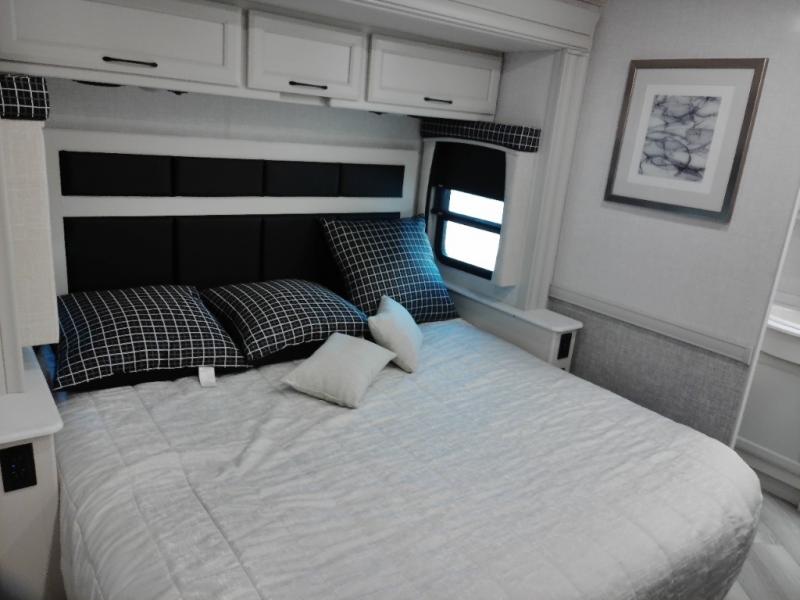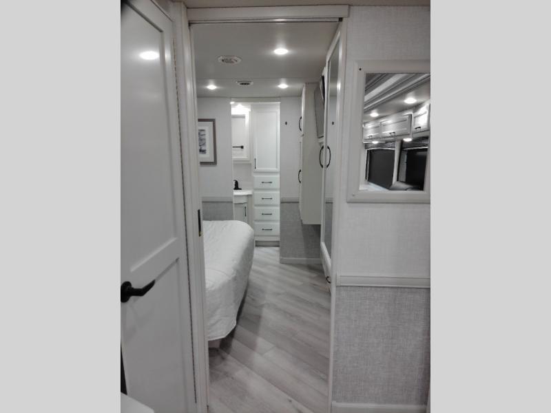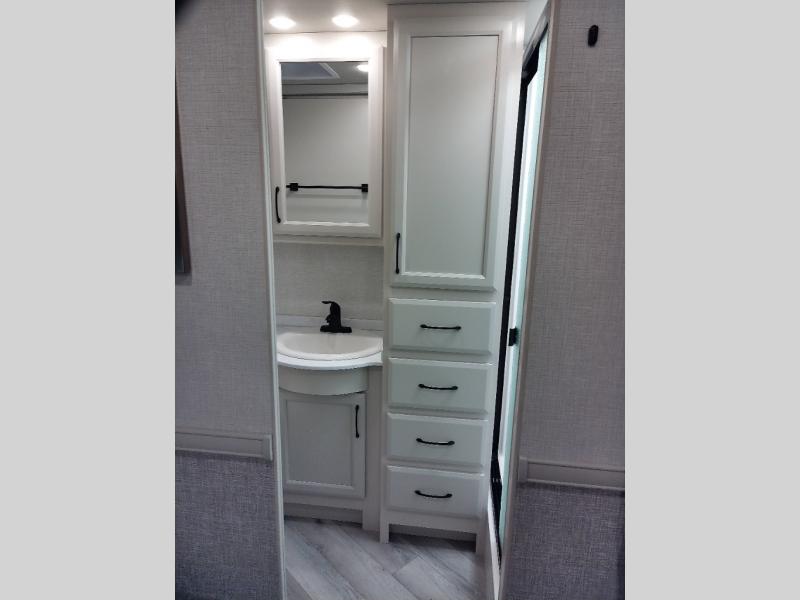 Traveling with a larger group is easier than ever in this coach with a bath and a half, two slides, plus sleeping space for five. And you can choose the optional Hide-A-Loft drop-down overhead bunk if you have more guests tag along! You can make breakfast in the morning on the three burner cooktop, or use the convection microwave provided. Your crew can dine at the Rest EZ booth dinette and relax on the jack-knife sofa before heading out for the day. This model also includes a master bedroom with its own LED TV, dual bedroom wardrobes, plus a king bed slide out with storage space for a CPAP if needed. This model has a GVWR of 22,000 lbs., but is also available with a GVWR of 24,000 lbs.; see dealer for more details!