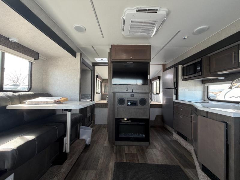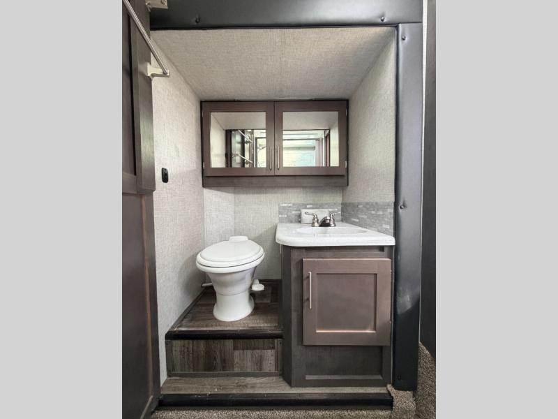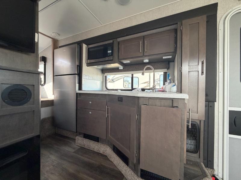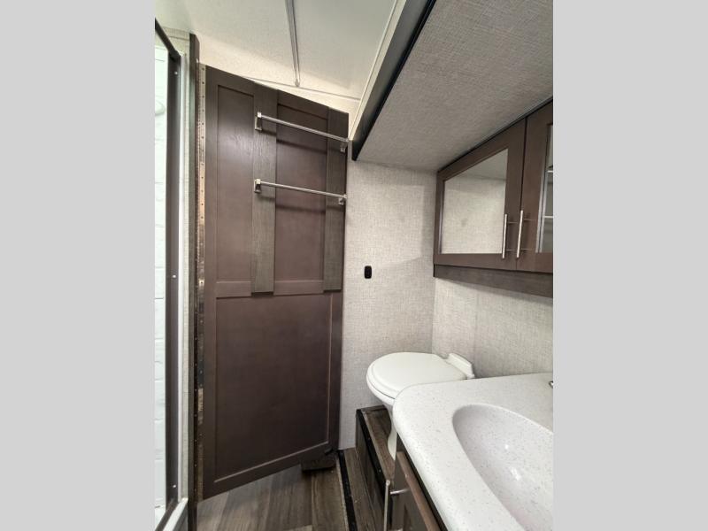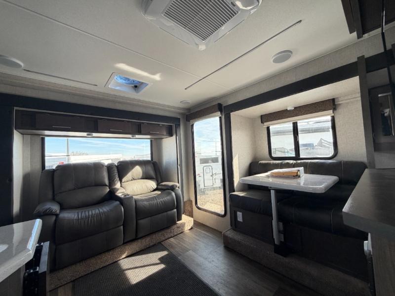 Triple slides offer more floor space in this truck camper with a rear U-shaped dinette slide and opposing side slides. You also have dual access to the front queen bed with clothing storage and there is a full bathroom to stay refreshed before mealtime or bedtime. The galley kitchen offers everything at your fingertips to cook meals each day. You can dine at the couch with a removable table or choose an optional full wardrobe or laundry center option in its place. You'll also enjoy a U-shaped dinette that can sleep two, or you can choose the optional 6' couch or optional theater seating. There are other options to choose from such as adding a living room and/or bedroom TV and a fireplace to stay cozy in the living and kitchen area.