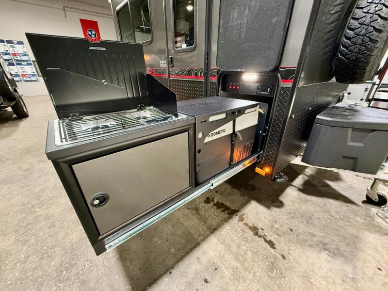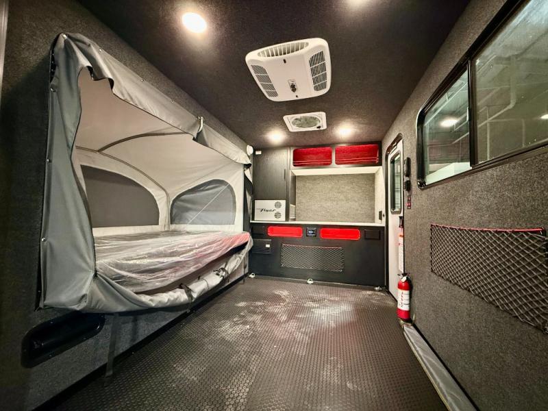 Not only is this Flyer toy hauler built to go where most traditional RVs cannot, but it is also built with a standard rear ramp or optional double rear doors, and six tie-down rings so that it can also serve as the perfect cargo transport too! The interior is spacious with its 46" x 81" tip-out bed, and if you add the second optional tip-out bed, you'll have an amazing amount of space on the inside. This expandable toy hauler is very functional, but you can make it even more enticing by adding optional Adventure Package that comes with an A/C, off-road tires, a roof rack, plus a slide out kitchen! This will allow you to cook wherever you choose to camp. The dry weight for this unit ranges from 1,580-2,110 LBS, the tongue weight ranges from 250-485 LBS, and the net carrying capacity ranges from 880-1,410 LBS.