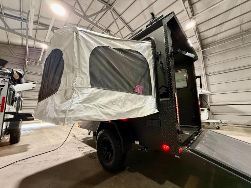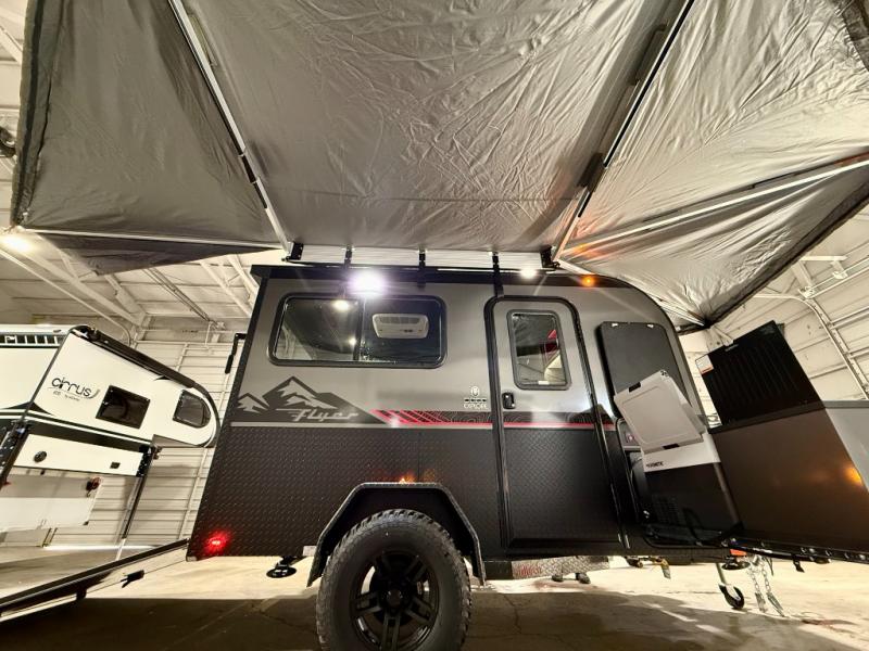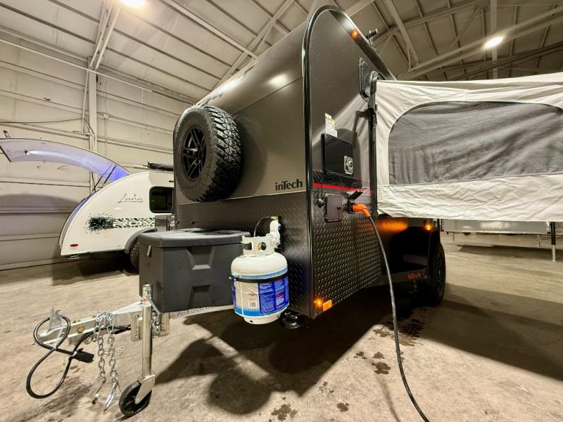 The inTech RV Flyer travel trailers and toy hauler expandables are ready for adventure whenever you are! With the all-aluminum, all-tube cage frame, the Flyer has been built with lightweight and long-lasting materials so that you can enjoy your unit for many, many years. The Flyer has a rugged design so that you can confidently explore new territory and go where traditional RVs cannot. The Flyer has a 2" rear receiver rated for 175 pounds which allows you to bring along your bikes, and the Bluetooth stereo has two speakers you can always have your best music playing. The optional roof rack will allow you to bring along kayaks, and there are more available options depending on the model you choose.