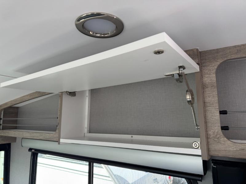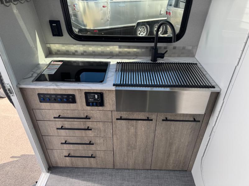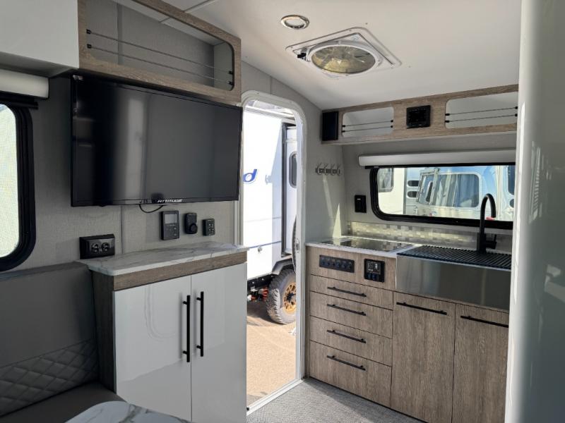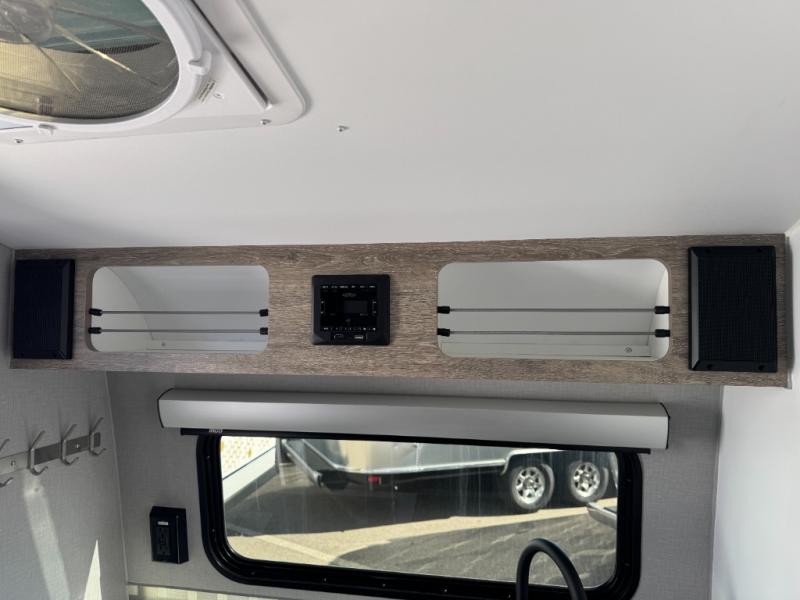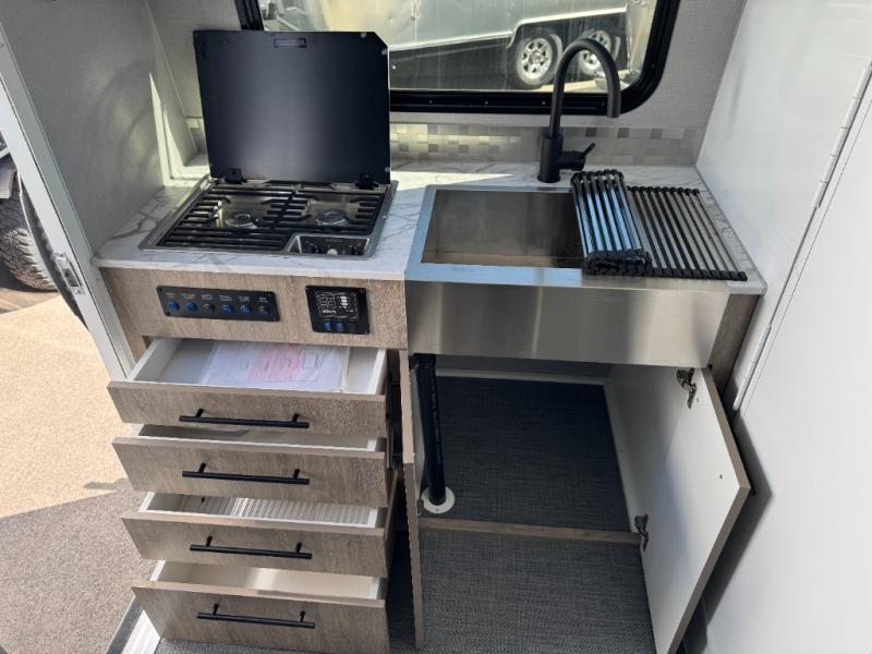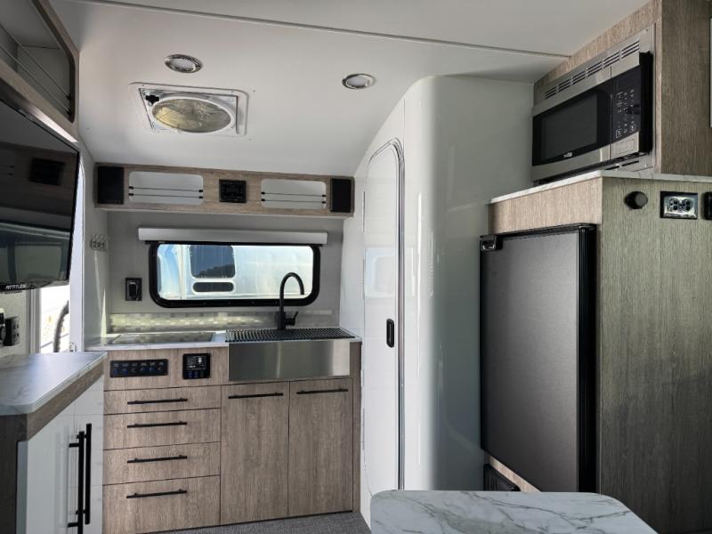 With any Sol travel trailer by inTech RV you will find strong, durable construction consisting of lightweight aluminum that is easier to tow and resists rust, water, and dents. The Tilt-Forward Design creates more space inside so you can stretch out, and the panoramic windshield gives a great view of the mountains, ocean, or forest! The elegant interior features tinted windows with shades, Infinity woven flooring, and a stainless steel cooktop and microwave. You will stay comfortable year around since these models include a 15K BTU A/C and a 16K BTU furnace.