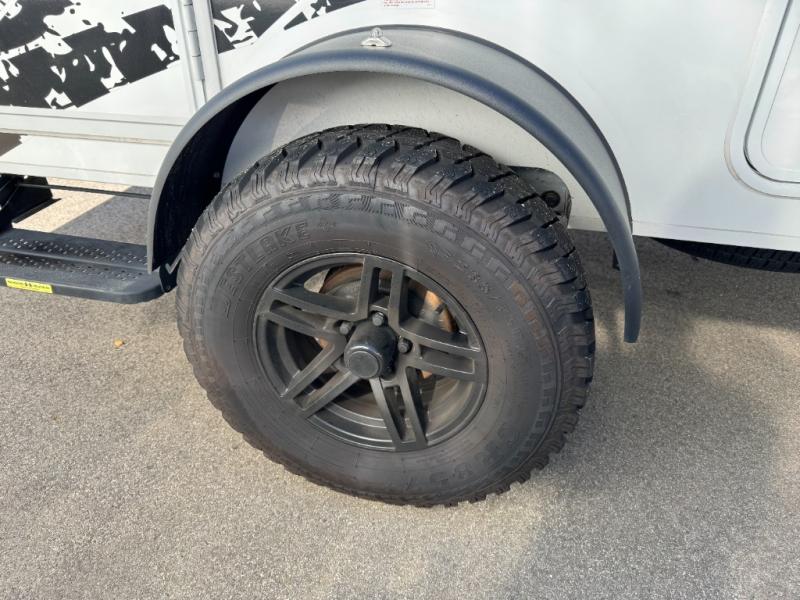 Make each adventure count with this Sol travel trailer. You and your loved one will have a convertible dinette to enjoy meals at and sleep on at night. In the morning, prepare eggs and bacon on the two burner stainless steel cooktop before heading out for the day. If you've chosen the optional 7' awning, you may not wander off too far from your trailer. This model also includes a wet bath with a porcelain toilet, a roof vent, plus a mesh shower storage net with two towel hooks for your convenience. This model also has a dry weight that ranges from 2,682-2,952 lbs., a tongue weight between 280-310 lbs., and a carrying capacity between 805-910 lbs. When the optional Rover Package is chosen on this model, you'll enjoy rugged decals, a 3" lift, blackout wheels, and more; see dealer for more details!