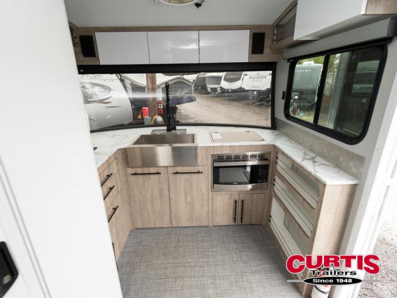 This Eclipse travel trailer will be the perfect companion on all your excursions. The large farmhouse style sink in the front kitchen provides plenty of space to clean up after dinner, and the stainless steel microwave will be perfect for popcorn and game night. The rear twin beds can be used to dine or sleep on, and you'll have a filler cushion if you want to convert them into a king-size bed! You won't have to worry about being bored on those rainy days since this model includes a 28" TV and a Bluetooth stereo with four speakers! This model has a dry weight that ranges from 3,365-3,795 lbs. lbs., a tongue weight between