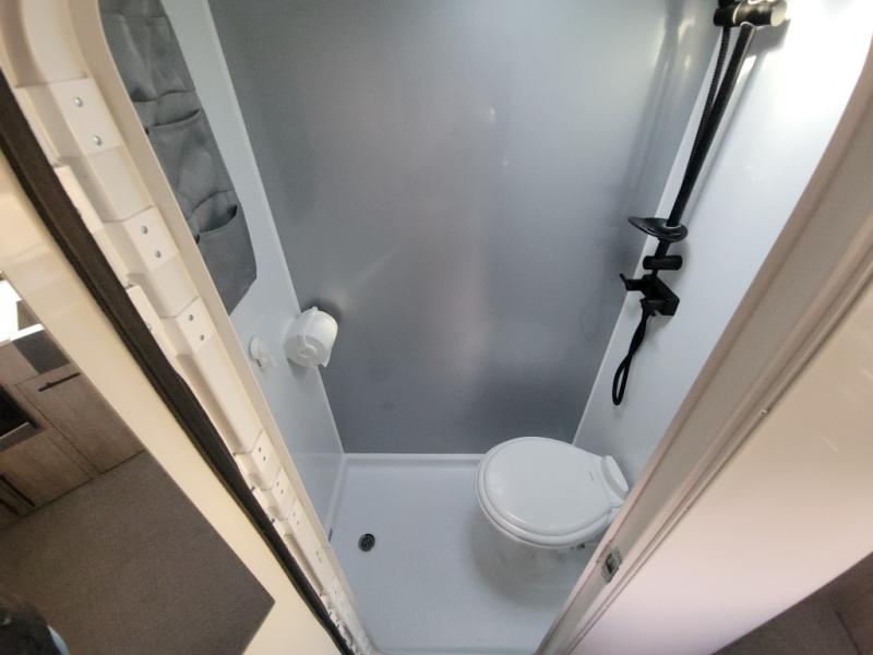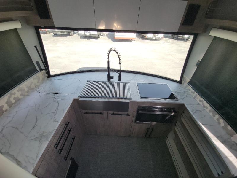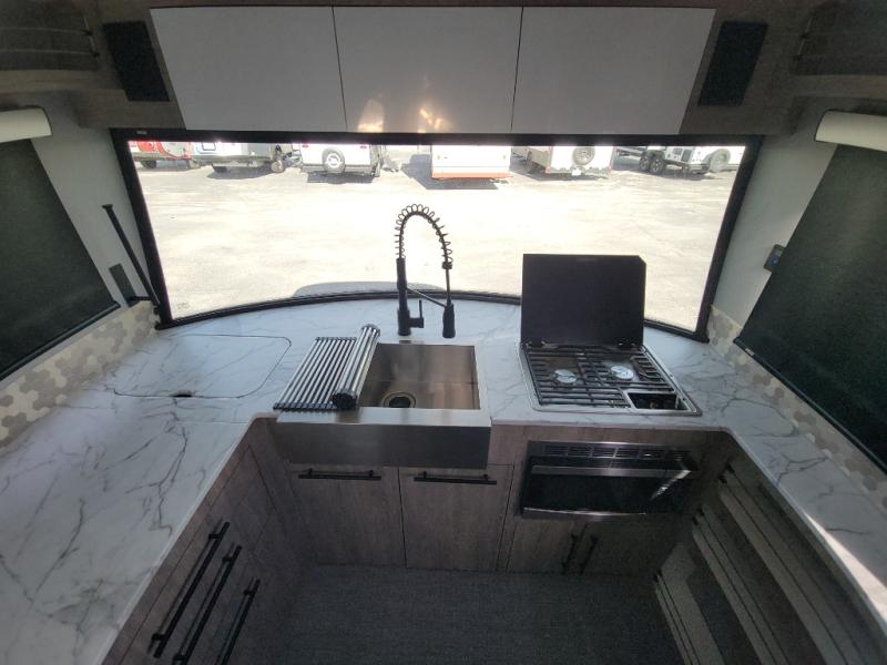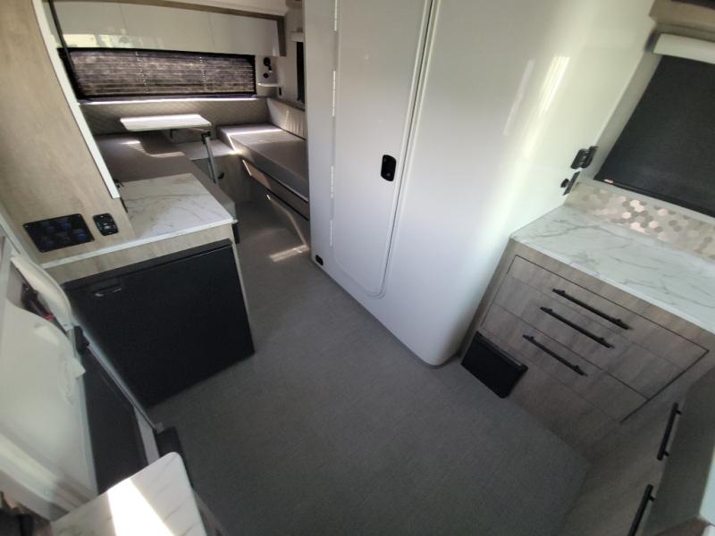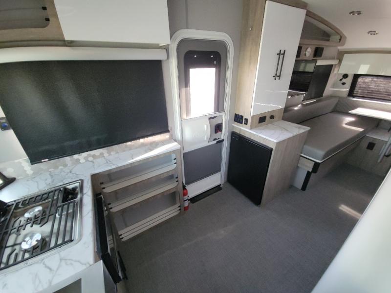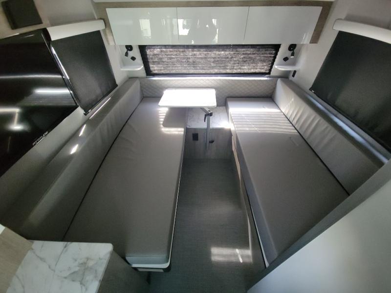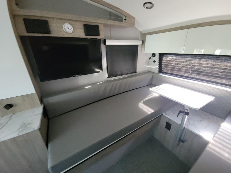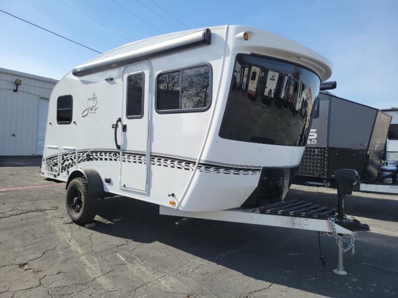 With any Sol travel trailer by inTech RV you will find strong, durable construction consisting of lightweight aluminum that is easier to tow and resists rust, water, and dents. The Tilt-Forward Design creates more space inside so you can stretch out, and the panoramic windshield gives a great view of the mountains, ocean, or forest! The elegant interior features tinted windows with shades, Infinity woven flooring, and a stainless steel cooktop and microwave. You will stay comfortable year around since these models include a 15K BTU A/C and a 16K BTU furnace.