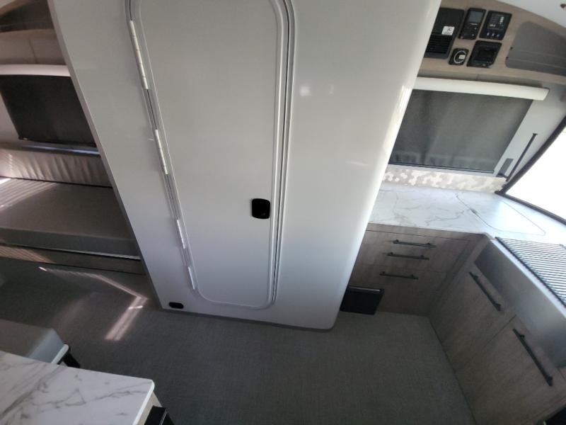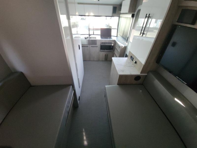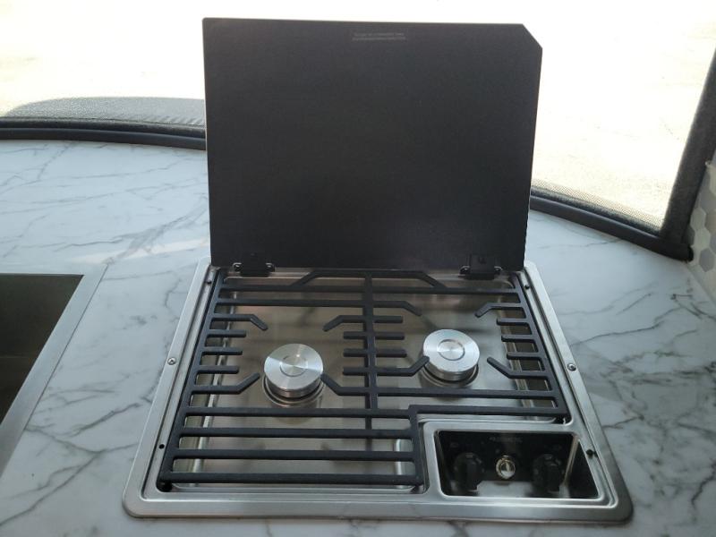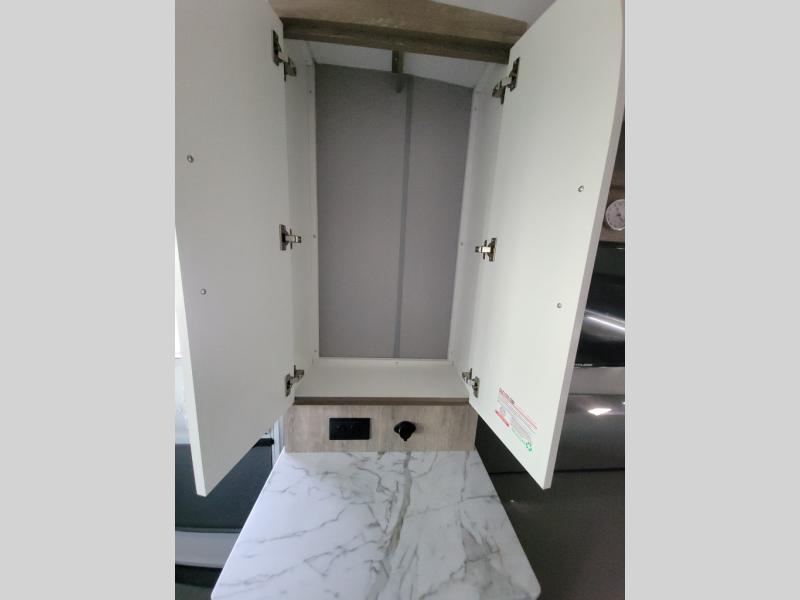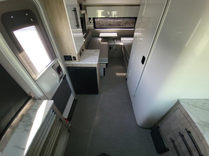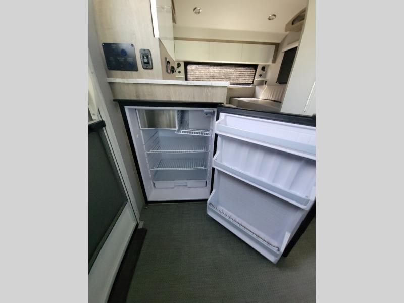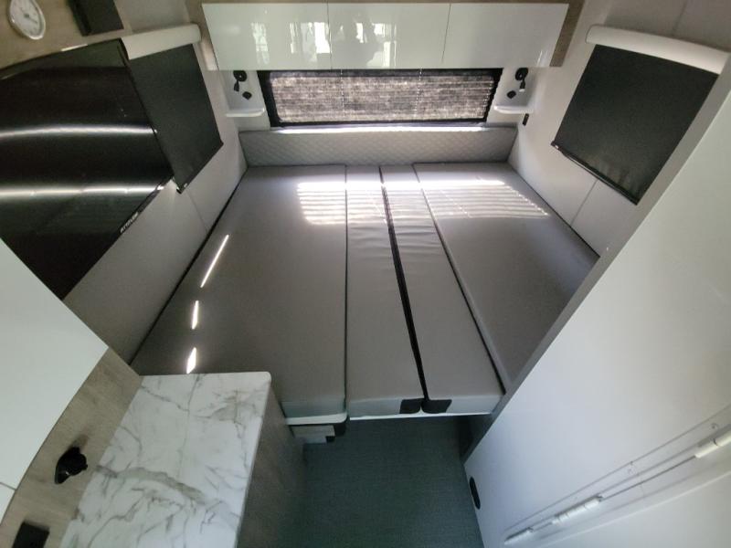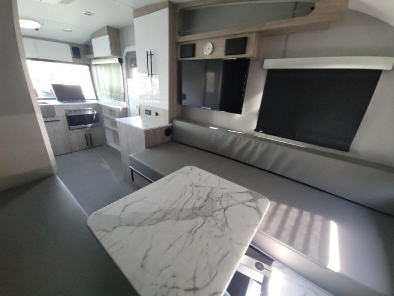 With any Sol travel trailer by inTech RV you will find strong, durable construction consisting of lightweight aluminum that is easier to tow and resists rust, water, and dents. The Tilt-Forward Design creates more space inside so you can stretch out, and the panoramic windshield gives a great view of the mountains, ocean, or forest! The elegant interior features tinted windows with shades, Infinity woven flooring, and a stainless steel cooktop and microwave. You will stay comfortable year around since these models include a 15K BTU A/C and a 16K BTU furnace.