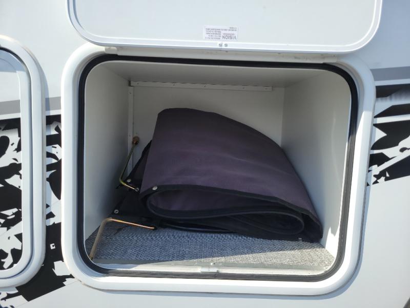 This Eclipse travel trailer will be the perfect companion on all your excursions. The large farmhouse style sink in the front kitchen provides plenty of space to clean up after dinner, and the stainless steel microwave will be perfect for popcorn and game night. The rear twin beds can be used to dine or sleep on, and you'll have a filler cushion if you want to convert them into a king-size bed! You won't have to worry about being bored on those rainy days since this model includes a 28" TV and a Bluetooth stereo with four speakers! This model has a dry weight that ranges from 3,240-3,660 lbs. lbs., a tongue weight between 490-550 lbs., and a carrying capacity between 1,140-1,560 lbs. When the optional Rover Package is chosen on this model, you'll enjoy rugged decals, a 3" lift, blackout wheels, and more; see dealer for more details!