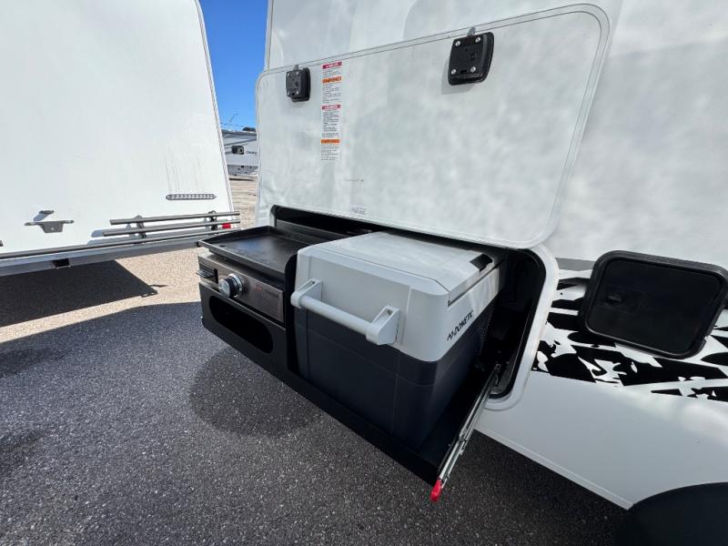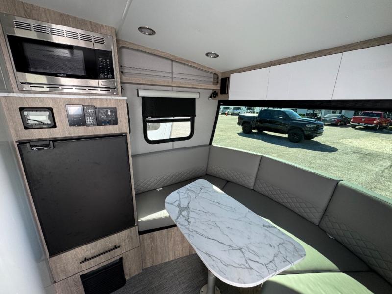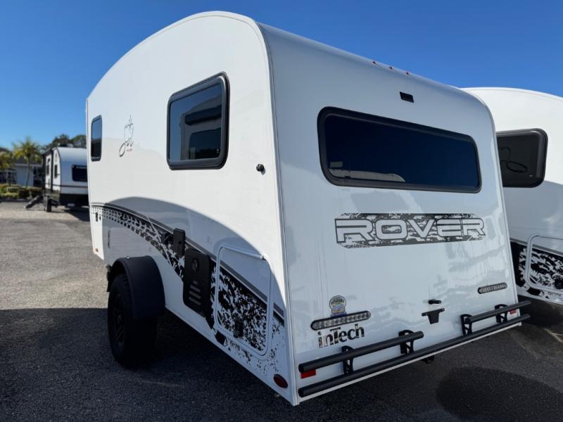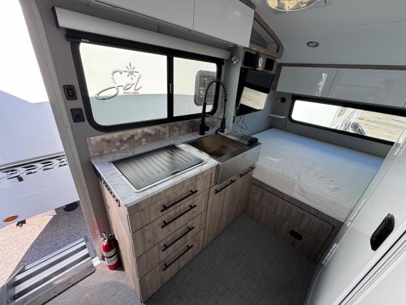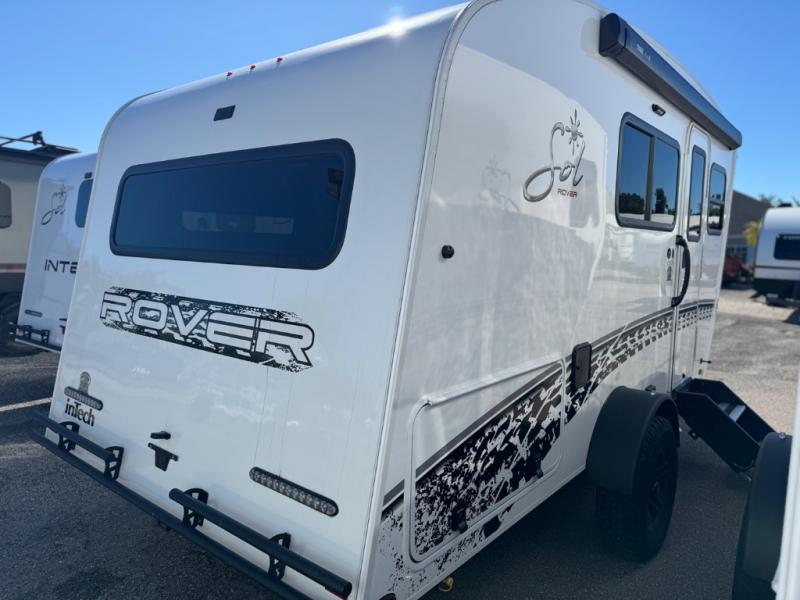 With any Sol travel trailer by inTech RV you will find strong, durable construction consisting of lightweight aluminum that is easier to tow and resists rust, water, and dents. The Tilt-Forward Design creates more space inside so you can stretch out, and the panoramic windshield gives a great view of the mountains, ocean, or forest! The elegant interior features tinted windows with shades, Infinity woven flooring, and a stainless steel cooktop and microwave. You will stay comfortable year around since these models include a 15K BTU A/C and a 16K BTU furnace. The optional Rover Package can also be added that features rugged decals, off-road tires with a 3" lift, two different color choices to choose from, plus more!