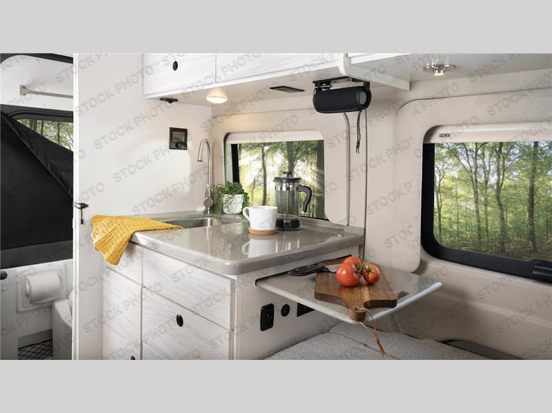 Enjoy every trip you take in this small, but mighty camper van! You will enjoy the drive just as much as the destination with a 10.1" Uconnect 5 NAV infotainment center and a ParkView rear backup camera. There is a 54" sofa to relax on once you park, and at night you can convert the sofa to a 54" x 72" bed. And the 27" bench seat is close by the entrance to provide a place to pull on your hiking boots. After you've worked up an appetite outdoors, you can prepare lunch on the portable induction cooktop, clean up with the stainless steel sink with a cover, and store leftovers in the 3 cu. ft. refrigerator/freezer. This model also includes a rear wet bath so you can freshen up before bed, and the bath wardrobe will let you keep your clothes and towels tidy!