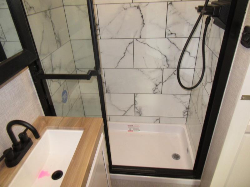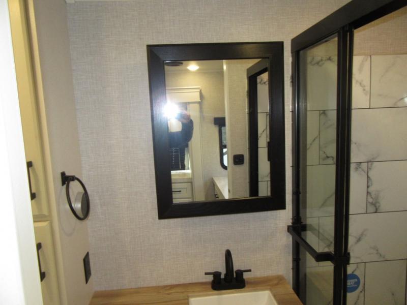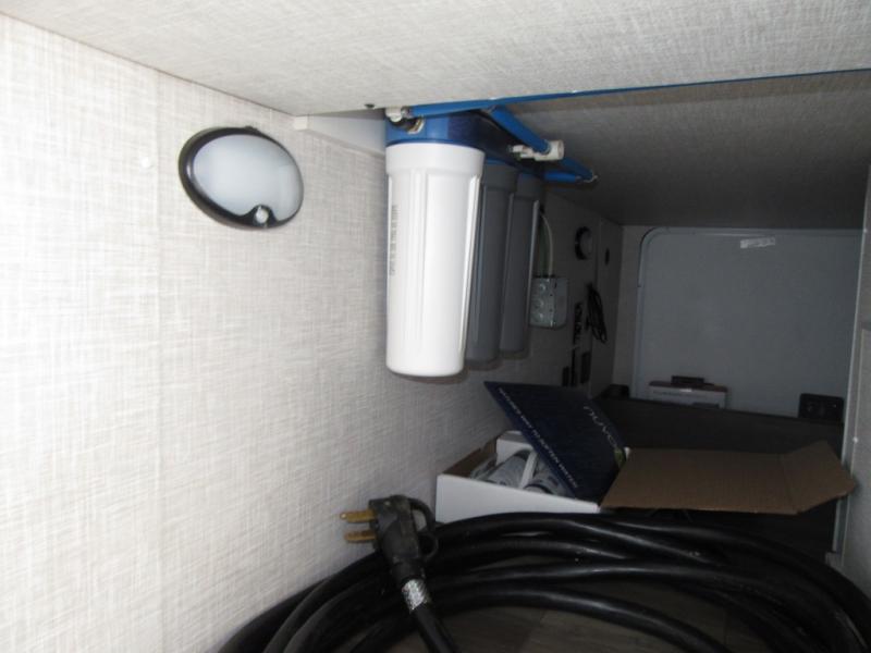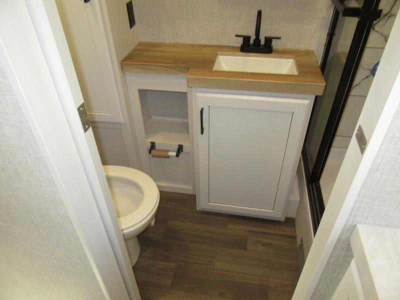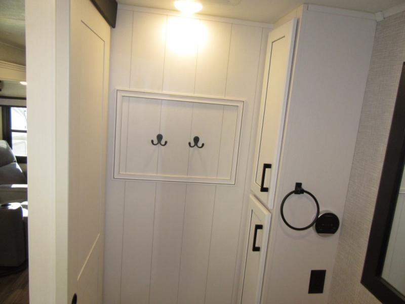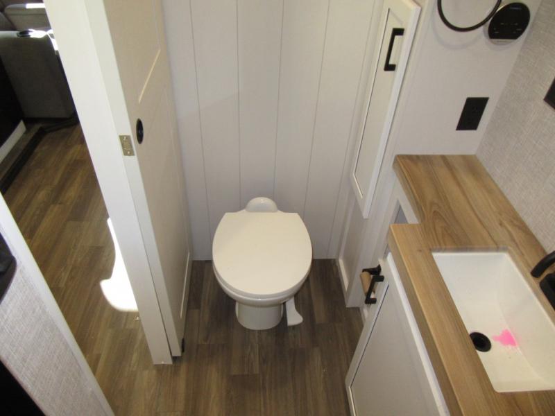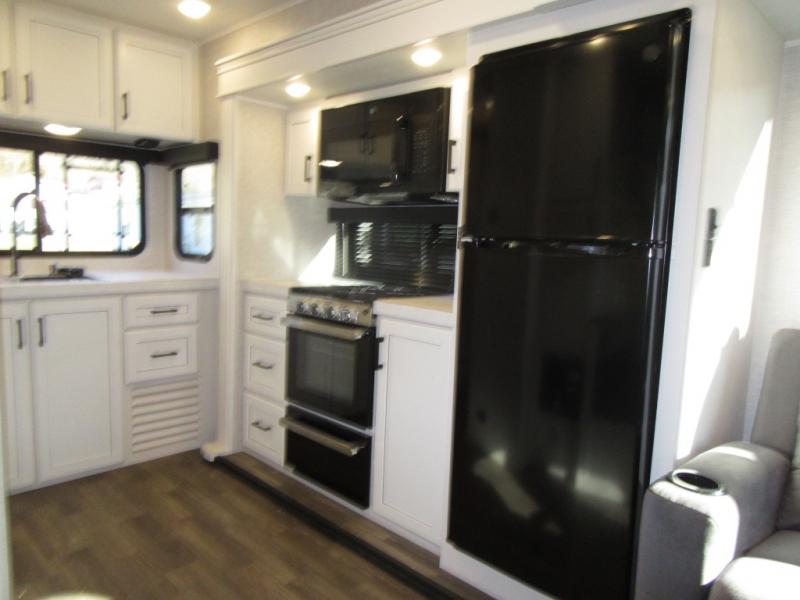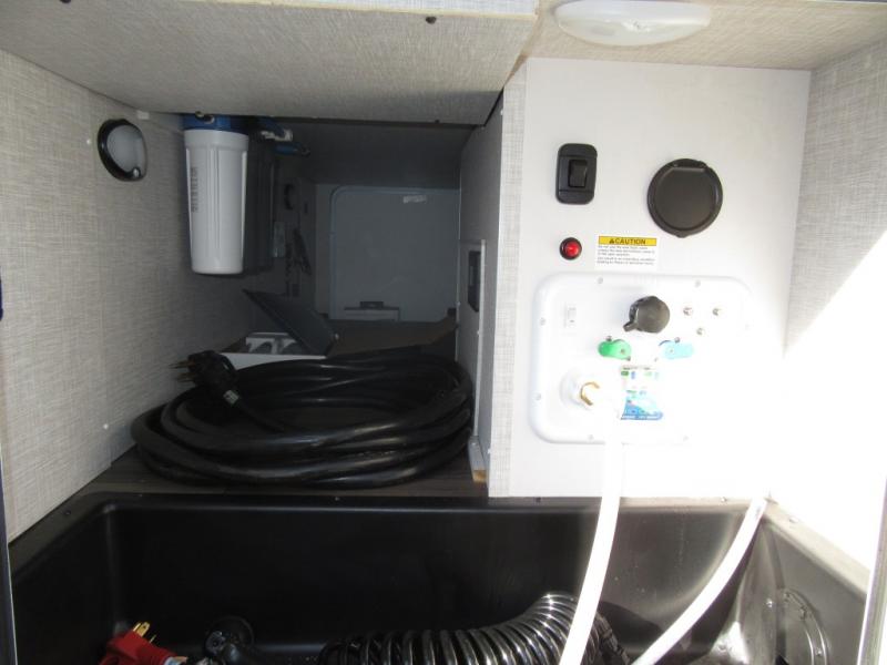 It will be so easy to enjoy camping trips when you're in this travel trailer! A full kitchen, complete with a three burner cooktop, over-the-range microwave, and 10 cu. ft. 12V refrigerator will let you cook and store meals, and the booth dinette provides a place to dine. Within the large slide, you'll find the 60" theater sofa with cup holders which is across from the 40" 4K Ultra LED HD Smart TV! You'll love having a 66" x 80" Olympic queen bed to sleep on, and there are dual wardrobes to keep your clothes organized. And larger camp gear can go outside in the pass-thru storage!