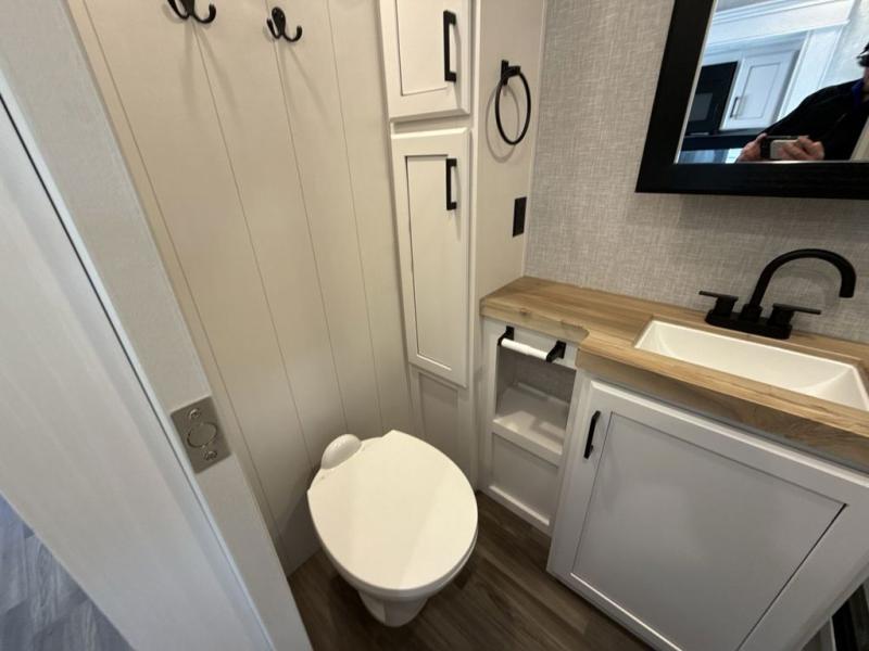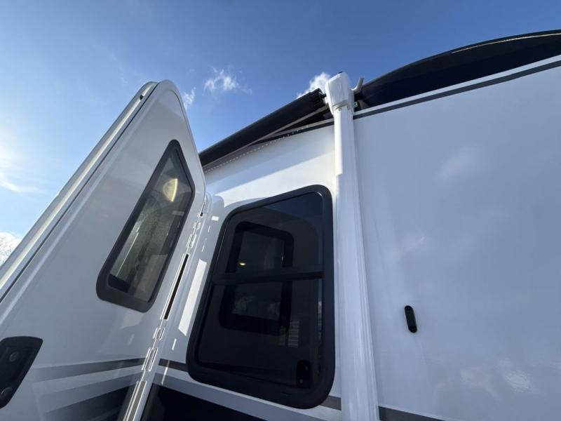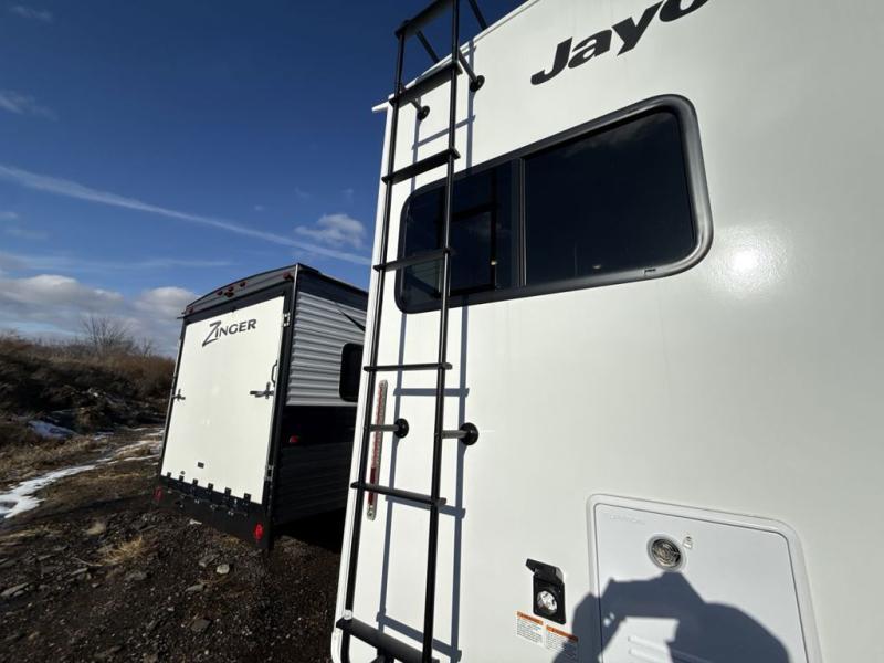 With any Eagle HT fifth wheel or travel trailer by Jayco you will enjoy a smooth drive thanks to the 4 Star Handling Package and MORryde CRE-3000 rubberized suspension. The Customer Value Package includes amenities that are sure to make camping easier than ever, like the 60K on-demand water heater, Keyed-Alike lock system, 15,000 BTU "Whisper Quiet" A/C, and more. Handcrafted and glazed door/drawer fronts will make your space feel more like home, along with residential vinyl flooring throughout, GE appliances, and blackout roller shades with reflective side throughout to keep the sun out when you want to sleep in. Each model also includes a NuVo H2O water treatment system with filters included, interior and exterior "Blue Sync" audio connect with MB Quart Sound for your TV and phone, and 100% no floor vents for added comfort and convenience!