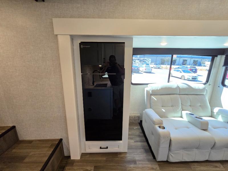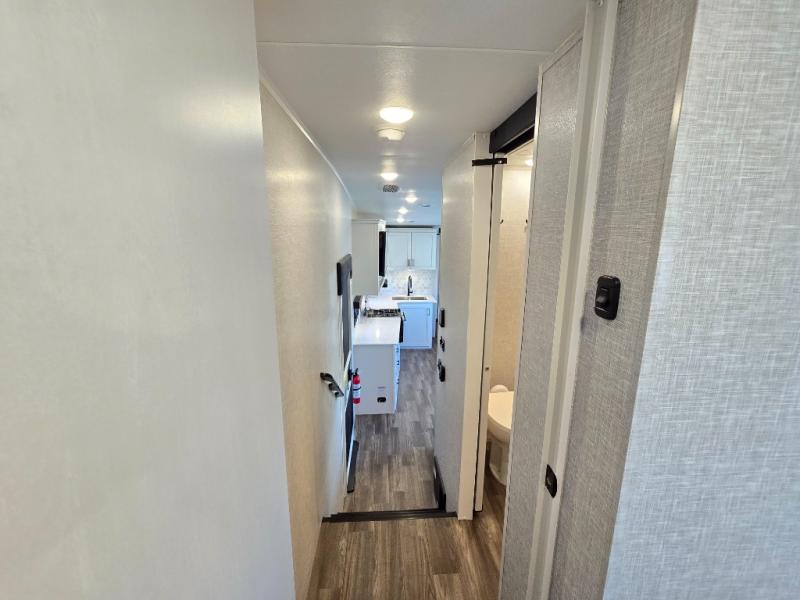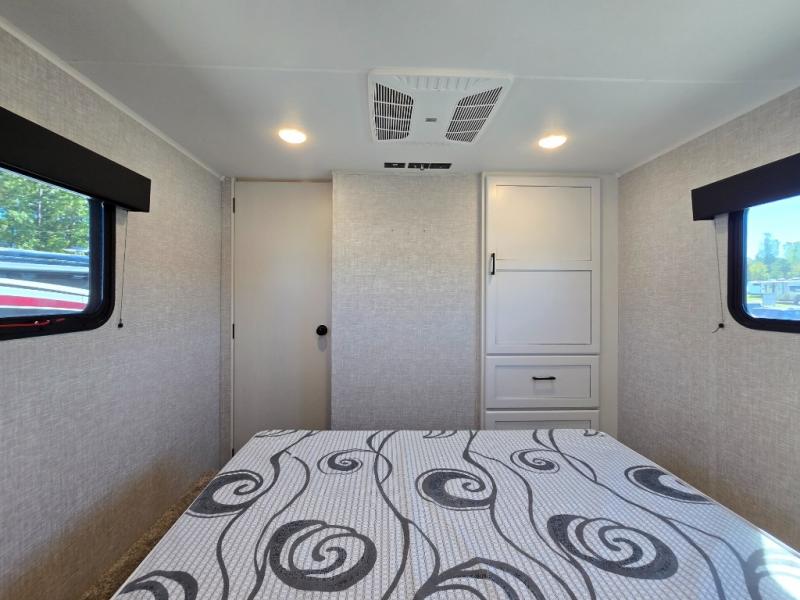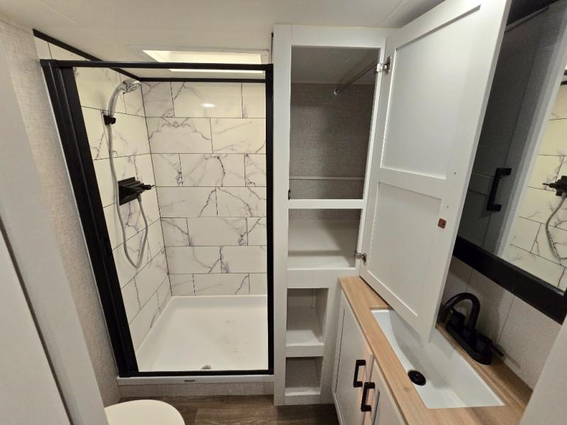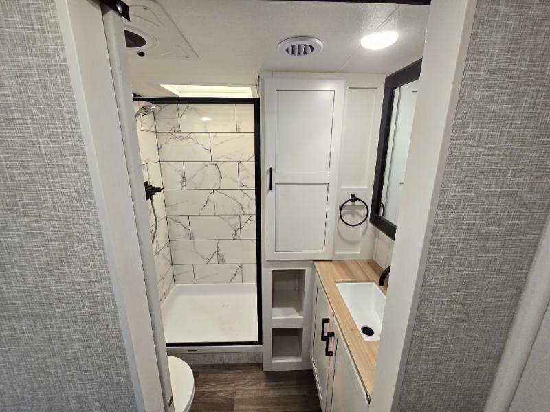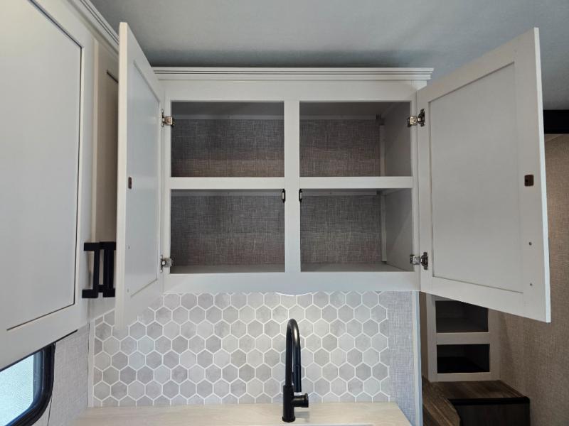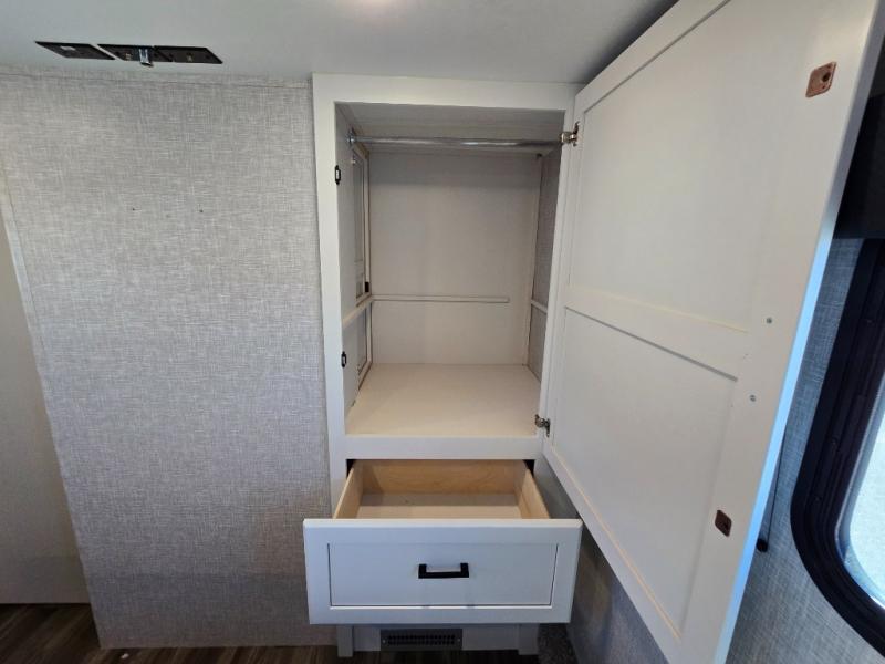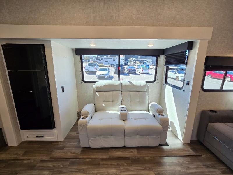 With any Eagle SLE fifth wheel by Jayco, you will enjoy a lighter tow weight, high-end finishes, and the same quality construction you've come to expect from Jayco! There is an Alpha Ply TPO roof membrane, a fully enclosed and heated underbelly, plus Stronghold VBL walls for added durability. There is also a rear 2" towing receiver outside, along with metal slam latch baggage doors, MORryde Step Above entry steps, and a Winegard Air 360 antenna with router prep if you want to stay connected as you camp. Once inside you'll enjoy the handcrafted and glazed door/drawer fronts, blackout pleated shades throughout, and residential vinyl flooring throughout with no carpet for an easier clean. The on-demand water heater, 30K BTU furnace, and 15K BTU "Whisper Quiet" A/C will ensure your comfort year around, and the optional Overland 1 Solar Package can be added if you need off-grid capabilities!