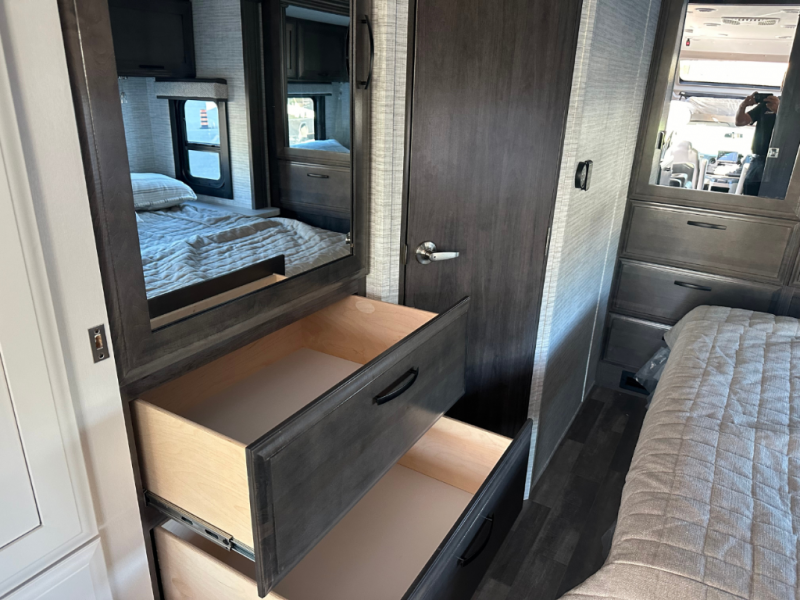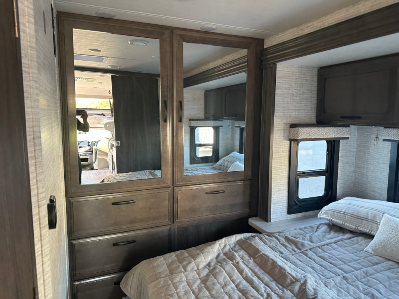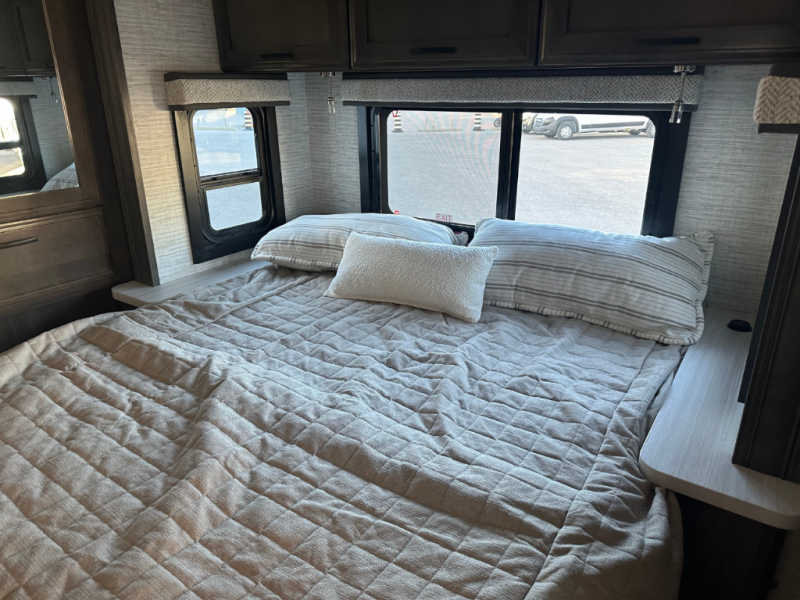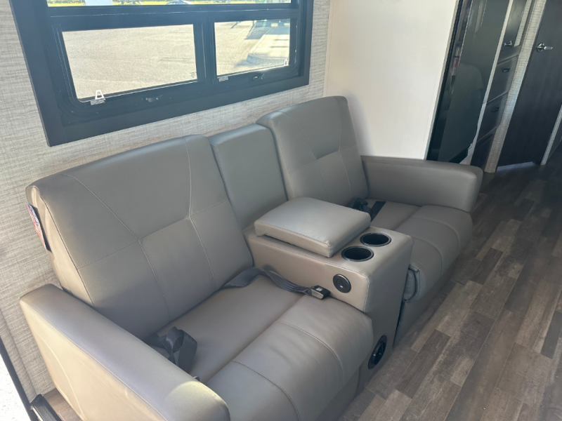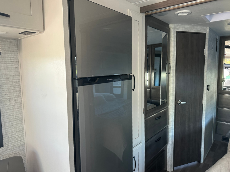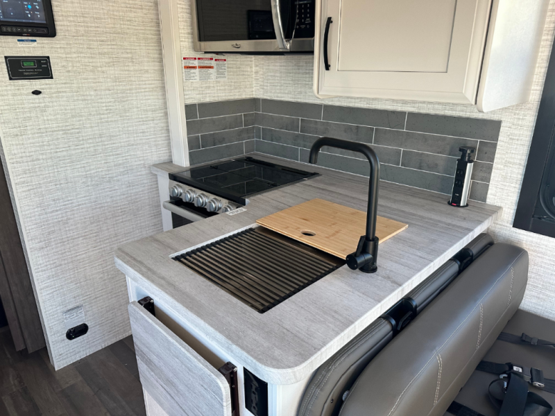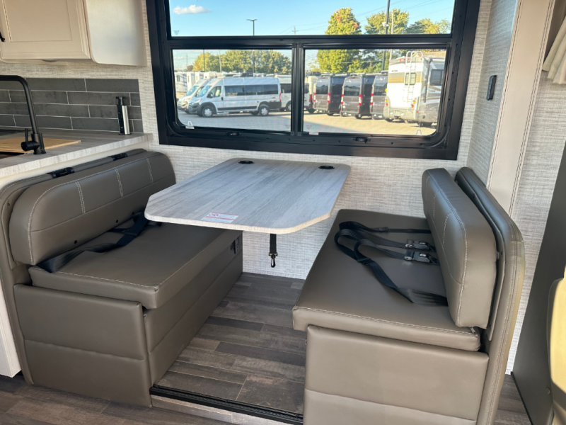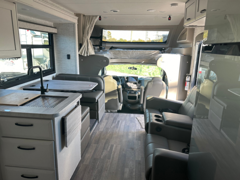 Trips across state lines just got sweeter in this motorhome for five to six. The swivel captain's seats can become a part of the living area once you park, and your guests can get comfortable on the 42" x 70" booth dinette or 68" jackknife sofa. There is a cab-over bunk the kids will love, and the LED HD Smart TV will allow you to enjoy movies. The chef of your group can prepare meals on the Furrion all-in-one cooktop and oven, and leftovers can go in the 10 cu. ft. 12V refrigerator. You will feel right at home in the bedroom suite with its king bed slide out, large wardrobe, and access to the rear corner bathroom. Get started on your getaway today in this cozy Class C motorhome!