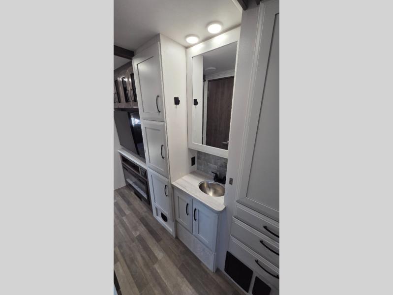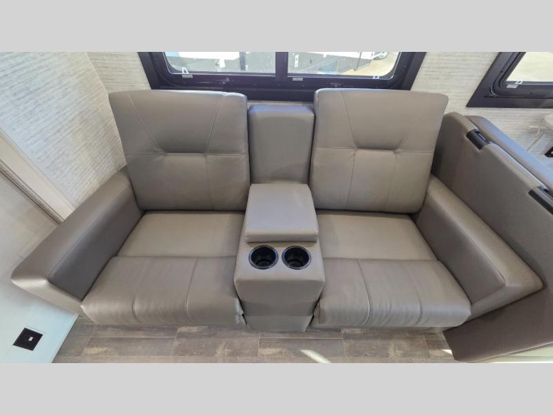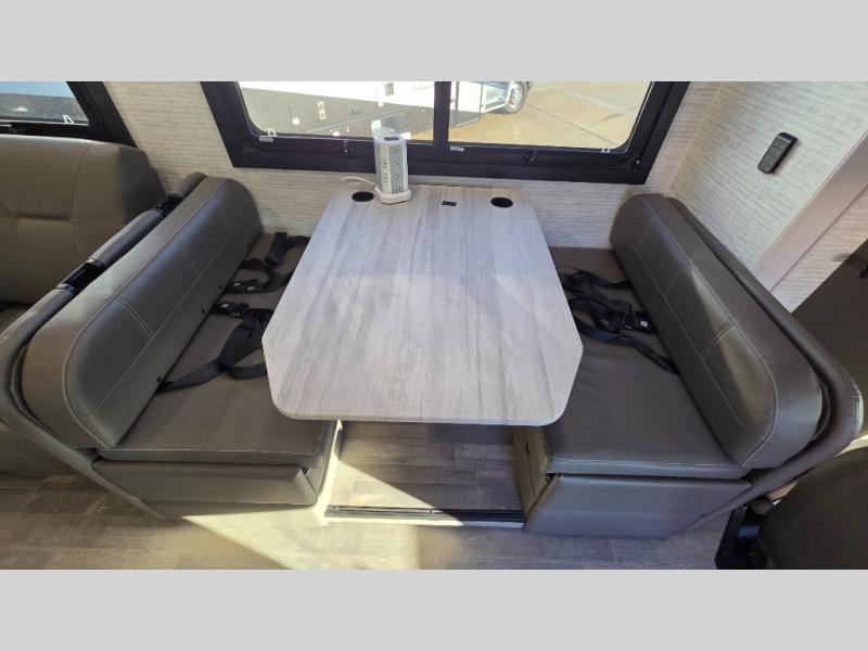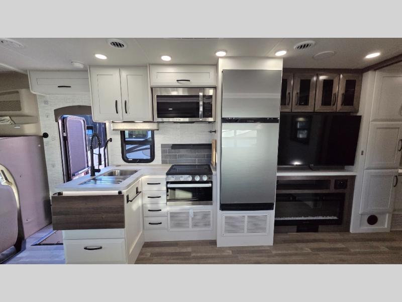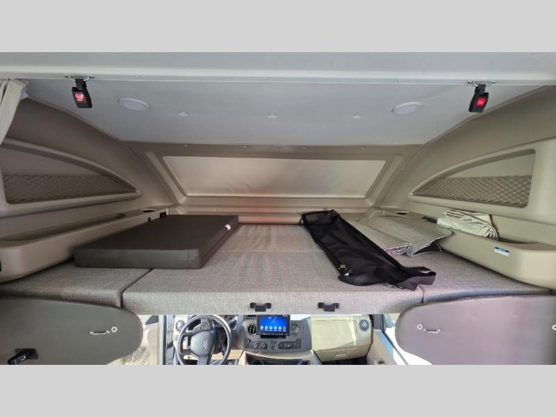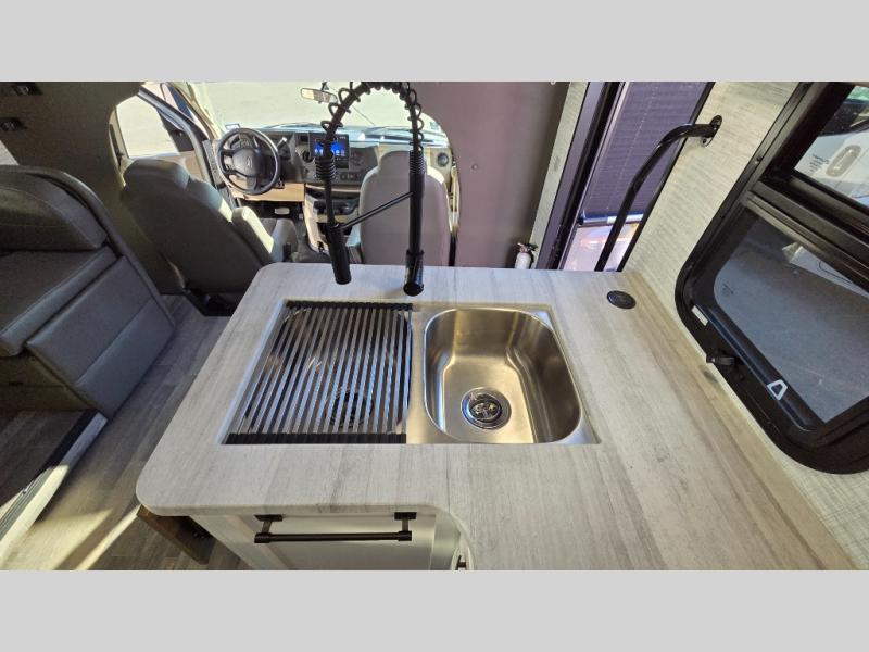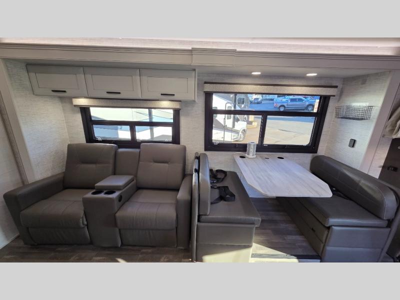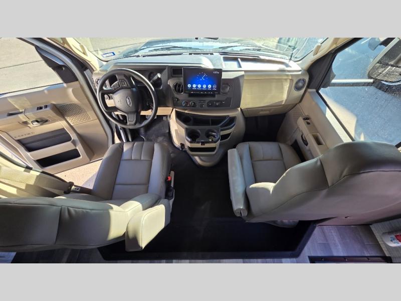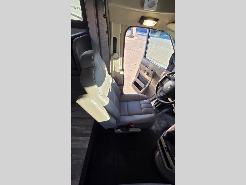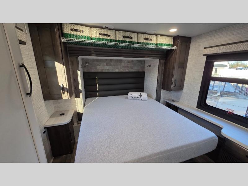 With any Greyhawk Class C gas motorhome by Jayco you will experience smooth sailing thanks to the JRIDE PLUS that comes with Koni shock absorbers, a computer-balanced driveshaft, Hellwig helper springs, and more. The Ford E-450 chassis with a 7.3L V8 325 HP engine will power your excursions, and you'll appreciate the added safety features for your peace of mind. Each model features a Sony infotainment center with Apple CarPlay and Android Auto, backup and side-view cameras, and a tire pressure monitor system the driver is sure to appreciate. Durable construction begins with Stronghold VBL roof, floor and sidewalls, bead-foam insulation, and a one-piece seamless fiberglass front cap. Head inside to find blackout night roller shades, LED-lit pressed countertops, an 84" interior ceiling height, and hardwood cabinet doors and drawers.
