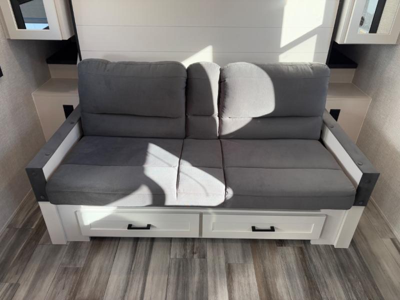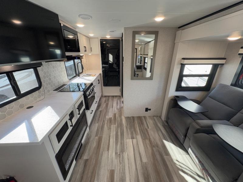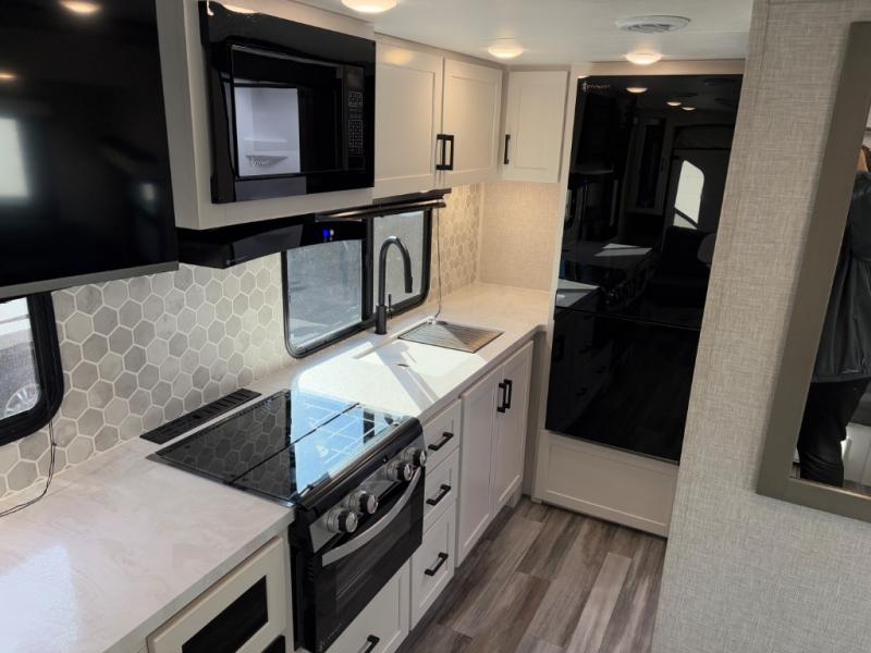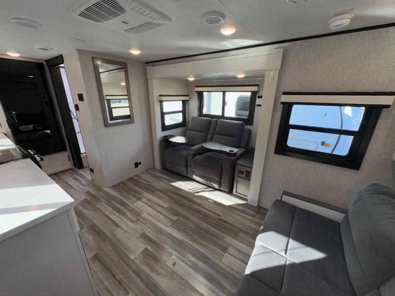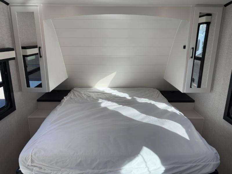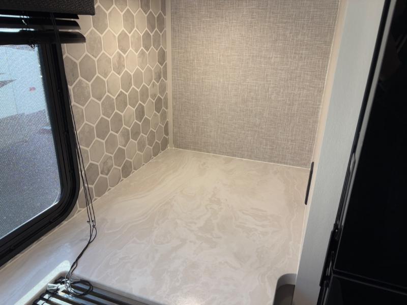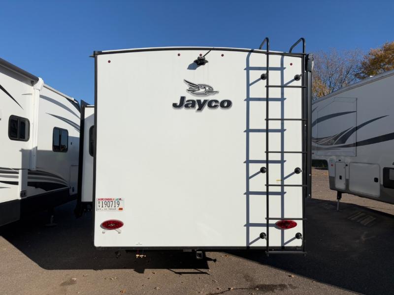 With any Jay Feather travel trailer by Jayco, you will enjoy lightweight towing, convenient exterior amenities, and at-home comforts inside! The Overlander 1 Solar Package included within the Jay Sport Package comes with a 200W solar panel and a 30-amp digital controller so you can enjoy some off-grid camping. There is also a modern graphics package with a dual-colored sidewall, LCI Solid Step fold-down aluminum tread steps on the main entry door, and Climate Shield 0 -100° F tested weather insulation package that will allow you to camp in all sorts of climates. The Customer Value Package will make time outdoors easier than ever with a power tongue jack and a Rock Solid stabilizer system, plus American-made nitro-filled Goodyear tires with self-adjusting electric brakes. More exterior features include a Keyed-Alike locking system, marine grade exterior speakers, a Magnum Truss roof system, and the list goes on! And we haven't even touched on the interior comforts, like the residential style seamless countertops and vinyl flooring throughout, decorative backsplash, handcrafted hardwood door/drawer fronts, and multiple USB charging ports to keep you going!