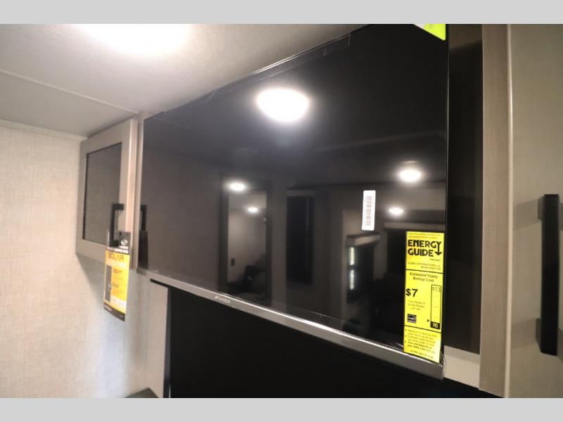 The Jay Feather 23RK is equipped with Jayco’s JAYCOMMAND® Smart RV system, giving you complete control over essential functions, including lighting, awning, and HVAC from your smartphone. Enjoy Wi-Fi® prep, 4G LTE connectivity, and an exterior TV bracket for outdoor movie nights under the stars.