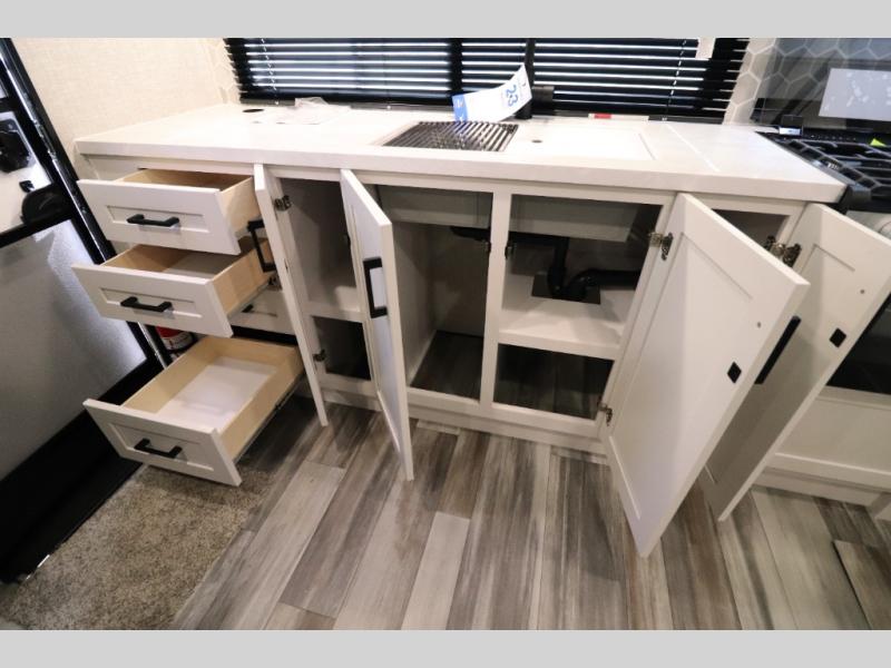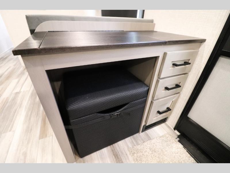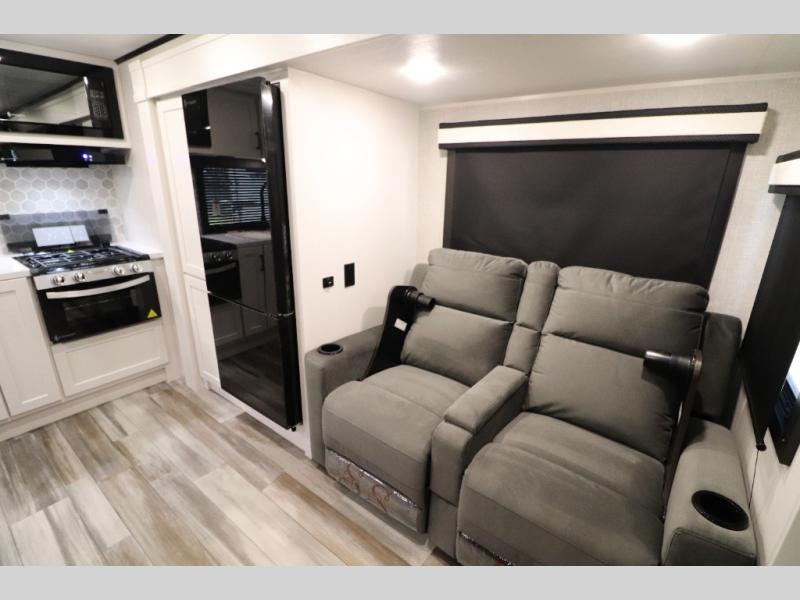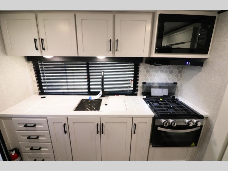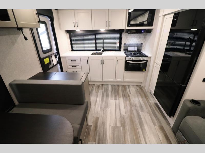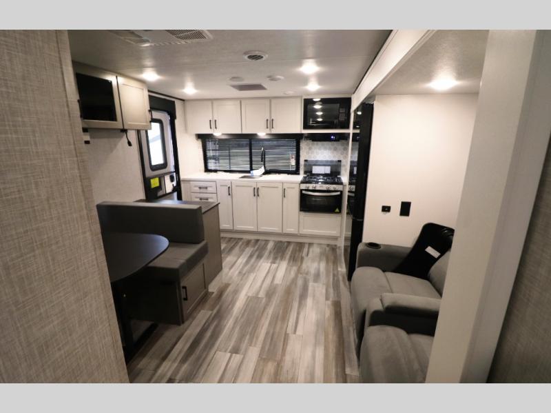 The 2025 Jay Feather 23RK offers an unbeatable combination of comfort and simplicity, with the space and storage needed for family outings or romantic getaways. The manageable length, lightweight design, and user-friendly features make it perfect for those new to RVing, while its modern amenities and cozy layout keep seasoned travelers satisfied. Families will appreciate the spacious rear kitchen and the ample sleeping areas, and couples will love the ambiance provided by the power awning and LED lighting, creating an inviting outdoor space.