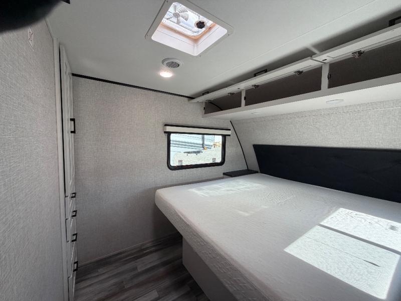 With any Jay Feather travel trailer by Jayco, you will enjoy lightweight towing, convenient exterior amenities, and at-home comforts inside! The Overlander 1 Solar Package included within the Jay Sport Package comes with a 200W solar panel and a 30-amp digital controller so you can enjoy some off-grid camping. There is also a modern graphics package with a dual-colored sidewall, LCI Solid Step fold-down aluminum tread steps on the main entry door, and Climate Shield 0 -100° F tested weather insulation package that will allow you to camp in all sorts of climates. The Customer Value Package will make time outdoors easier than ever with a power tongue jack and a Rock Solid stabilizer system, plus American-made nitro-filled Goodyear tires with self-adjusting electric brakes. More exterior features include a Keyed-Alike locking system, marine grade exterior speakers, a Magnum Truss roof system, and the list goes on! And we haven't even touched on the interior comforts, like the residential style seamless countertops and vinyl flooring throughout, decorative backsplash, handcrafted hardwood door/drawer fronts, and multiple USB charging ports to keep you going!