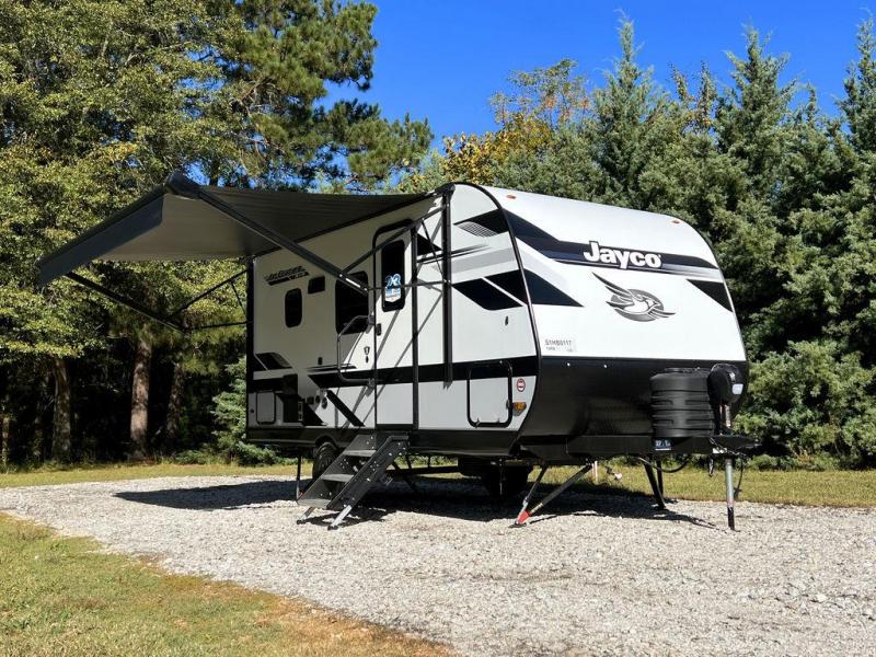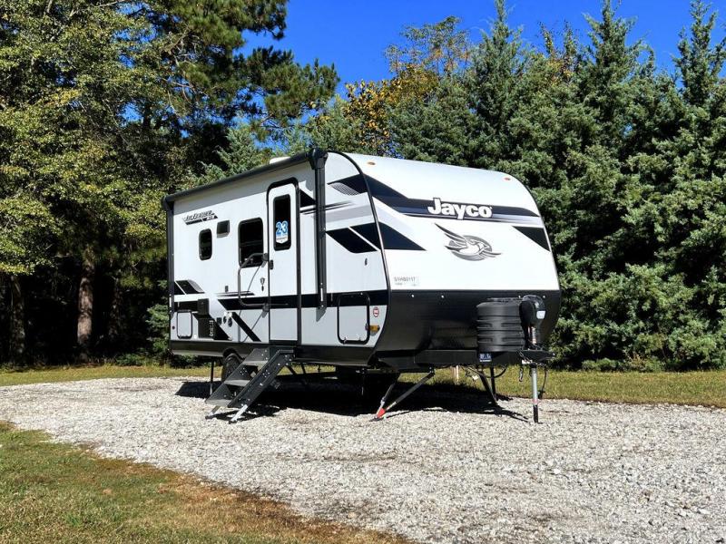 With any Jay Feather Air travel trailer by Jayco, you will enjoy lightweight towing and a variety of features to make each camping trip count! The Climate Shield insulation system helps extend your camping season by keeping you comfortable even in extreme weather conditions, and the Rock Solid stabilizer system means set up will be a breeze. An 18" rear roof ladder lets you easily clean the top of your Magnum Truss roof, and the 2" receiver will be perfect for your bike rack. The Overland 1 Solar Package with a 200W solar panel and 30-amp controller will provide off-grid capabilities, or you can can choose the optional Overland 2 Solar Package with two panels instead! Each Jay Feather Air includes residential-style seamless countertops inside, along with stainless steel sinks, decorative backsplash, and decorative roller shades with a reflective barrier to help keep the sun's rays out.