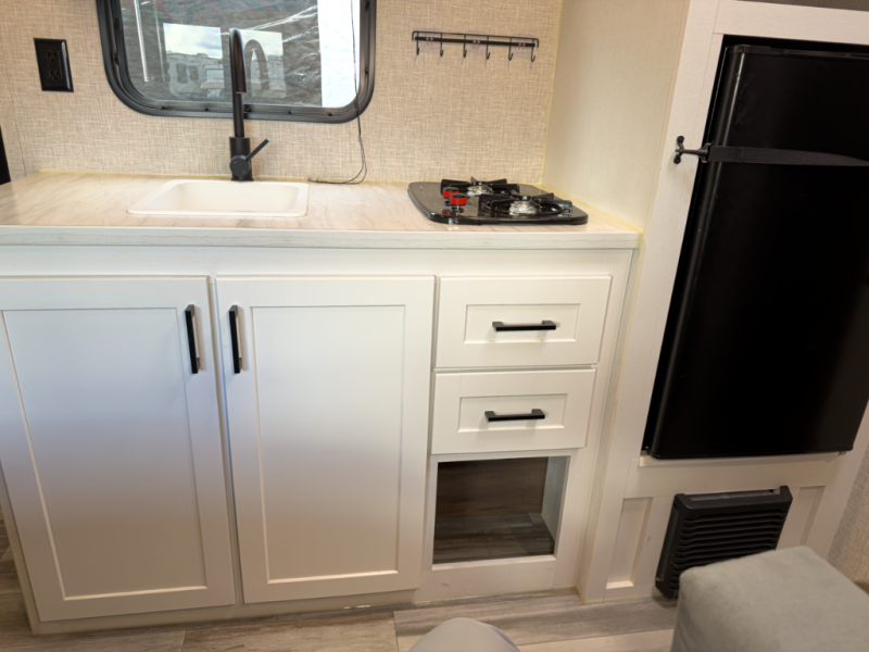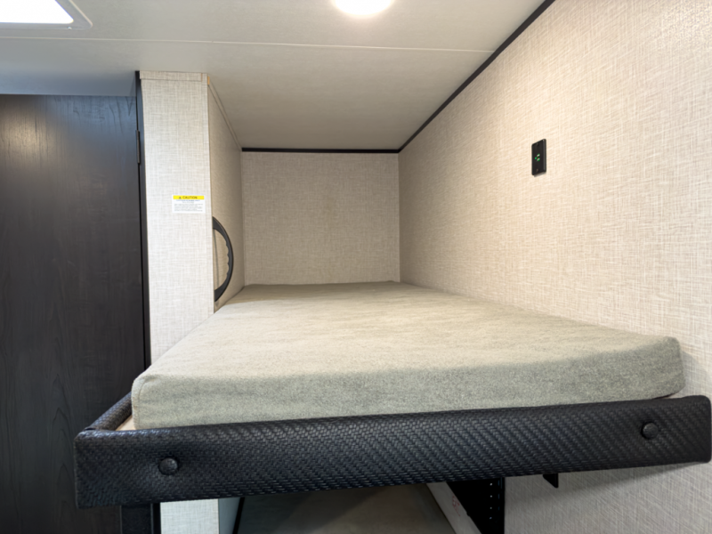 Your crew of five will love camping in this single-axle travel trailer! There are bunk beds in the rear corner and a full bath in the other rear corner for easy nighttime use. You will have the front queen bed to yourselves, along with an overhead shelf and a nightstand/wardrobe for your clothes. The booth dinette provides a place to dine, play games, and even let an extra guest stay over. The Customer Value Package on this Sport Edition model includes a 19K BTU furnace, stabilizer jacks, a power awning, an entry door with a window and shade prep, and many more stand-out features!