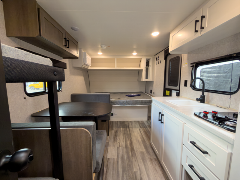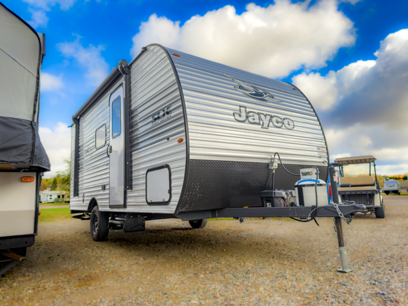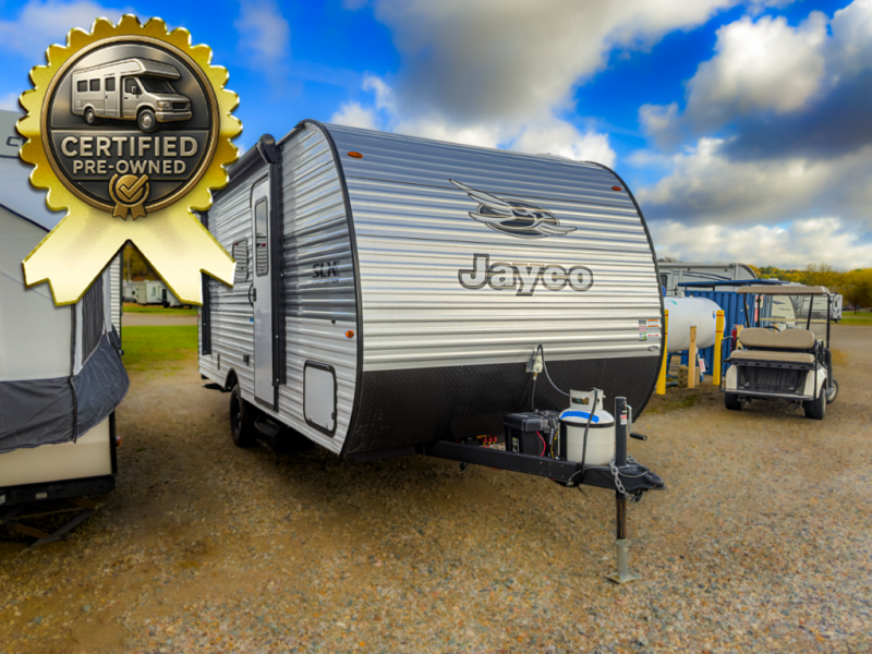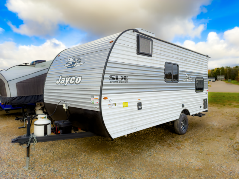 Jay Flight SLX 170BH with lightweight towability, double bunks, full kitchen, and dependable Jayco build quality priced for fast-moving family camping in Michigan.
