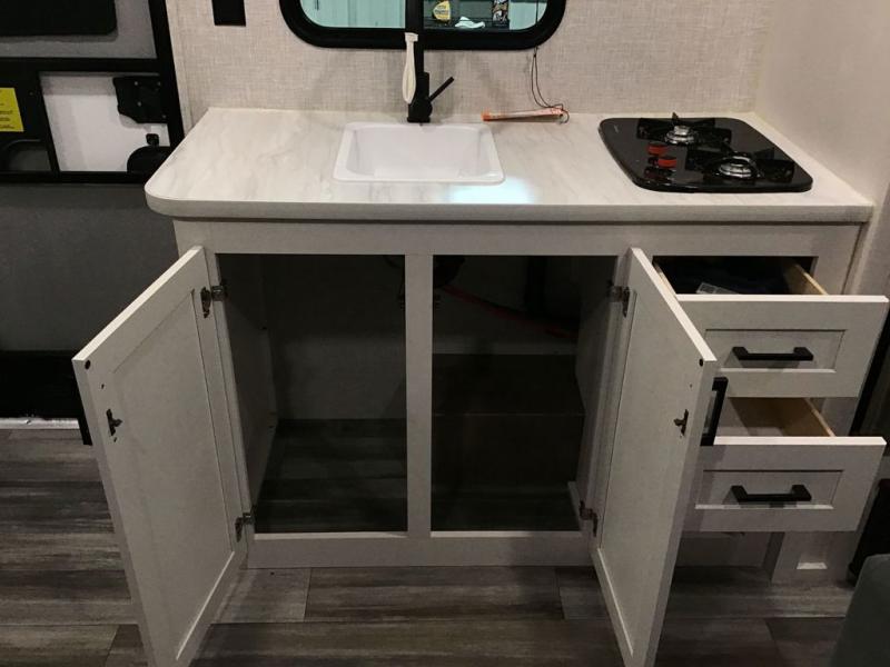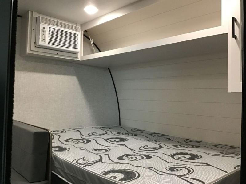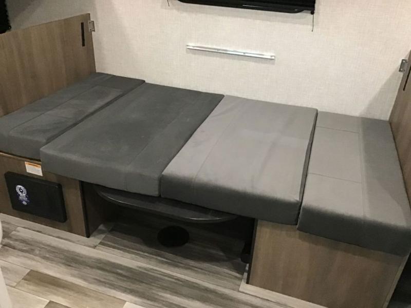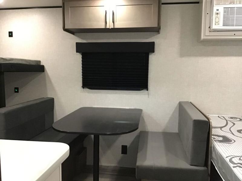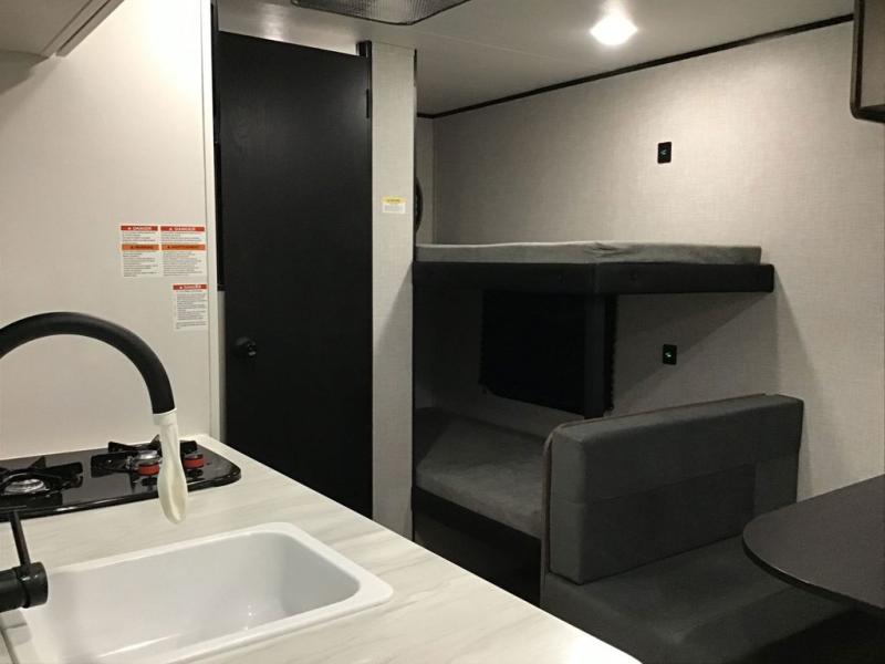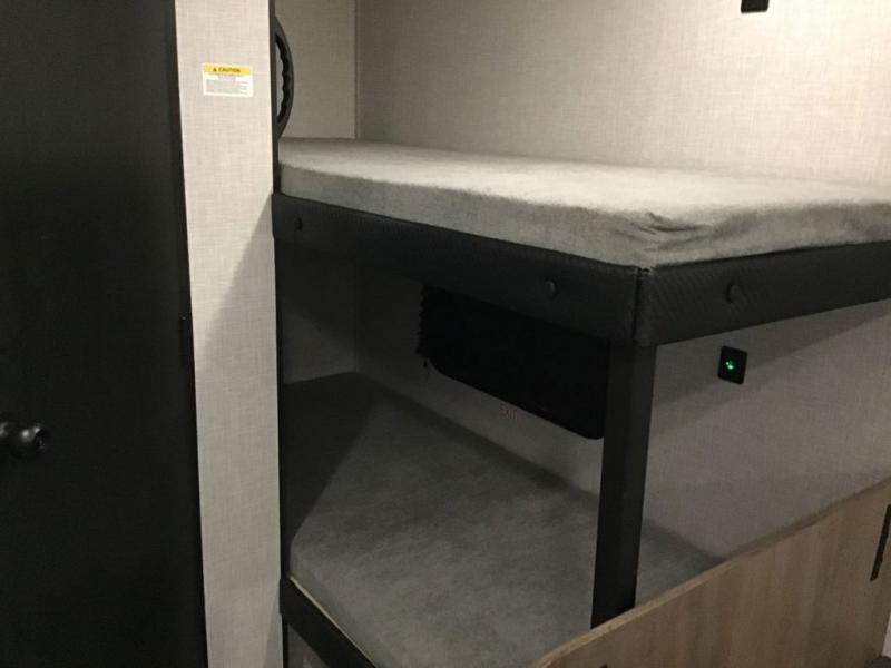 Your crew of five will love camping in this single-axle travel trailer! There are bunk beds in the rear corner and a full bath in the other rear corner for easy nighttime use. You will have the front queen bed to yourselves, along with an overhead shelf and a nightstand/wardrobe for your clothes. The booth dinette provides a place to dine, play games, and even let an extra guest stay over. The Customer Value Package on this Sport Edition model includes a 19K BTU furnace, stabilizer jacks, a power awning, an entry door with a window and shade prep, and many more stand-out features!