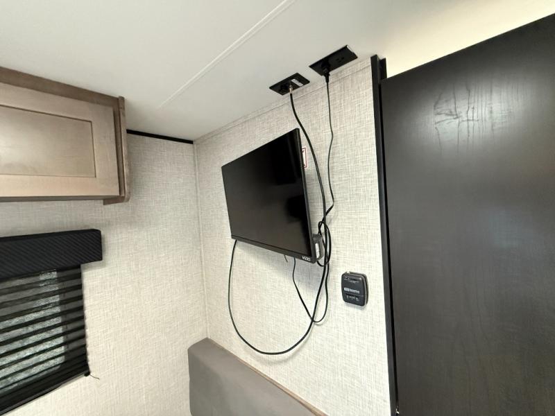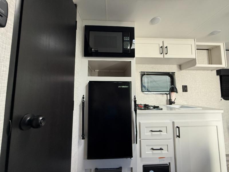 This travel trailer includes everything you need for fun trips at the lake. When you arrive at the campground, you can unload the exterior storage, then put out the 10' power awning. The booth dinette inside will provide a place to dine together, and the full rear bath with a 24" x 32" shower will make it easier than ever to clean up after a day of hiking. A front RV queen bed will provide a great night's rest, and the overhead shelf will be perfect for books or personal belongings. The optional STX Edition can be added on this model which features 16 in. off-road tires, triple entry steps, a power tongue jack, and more!