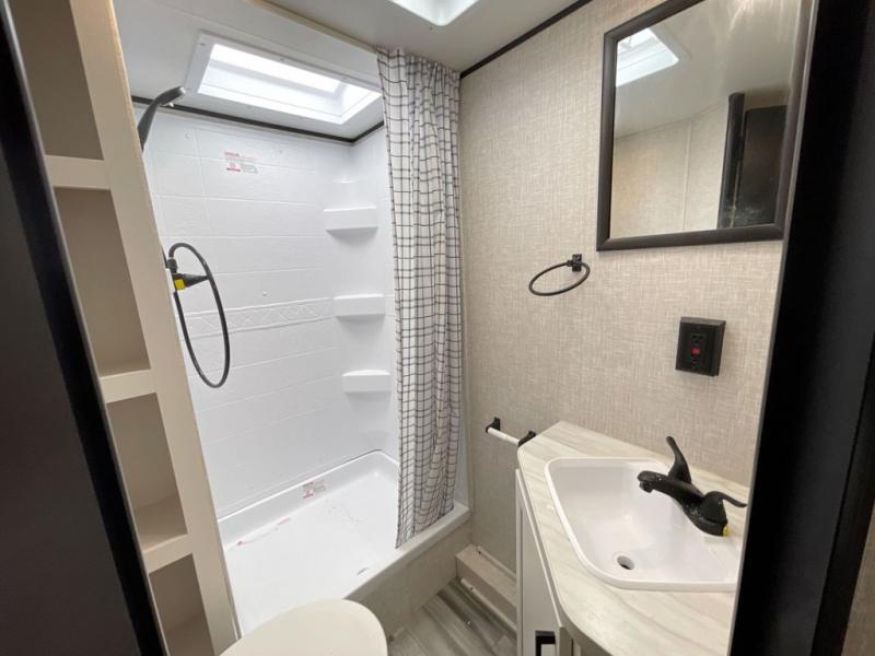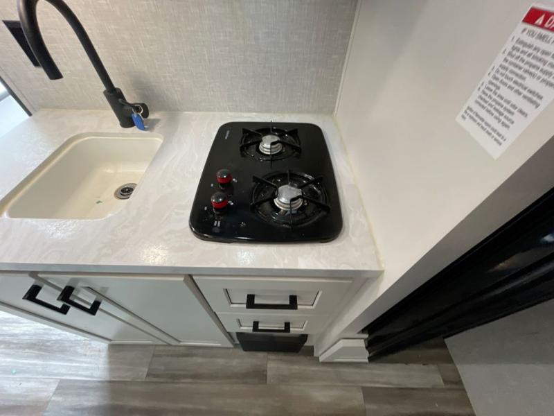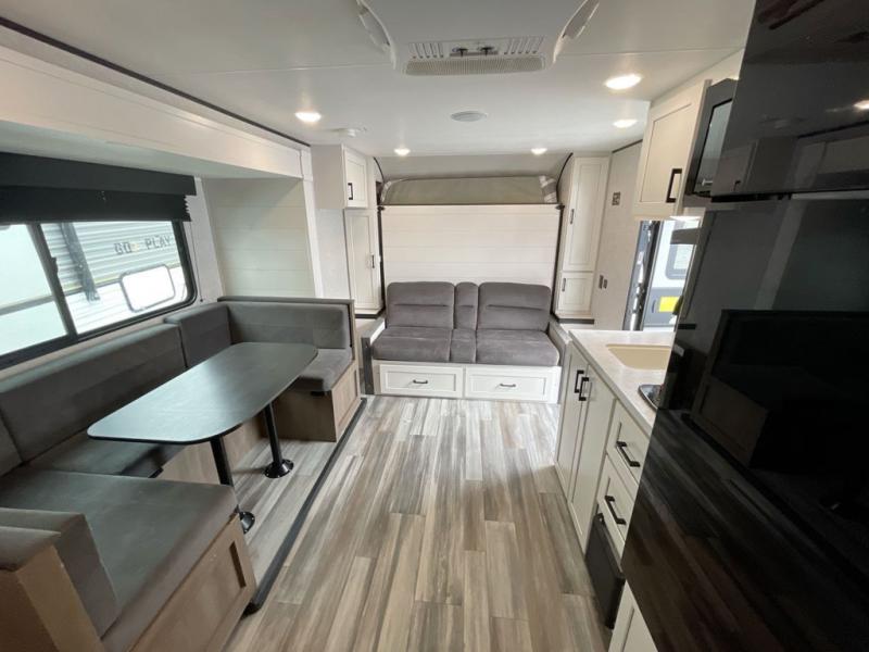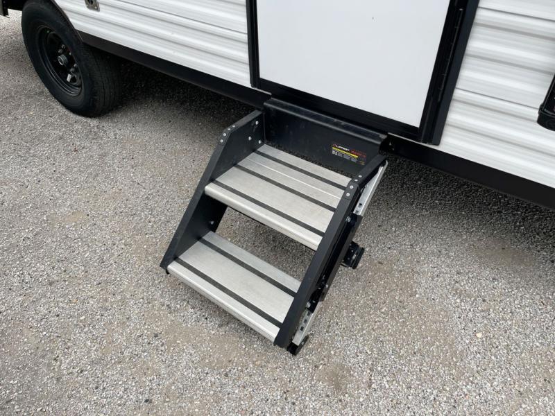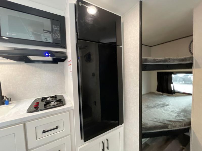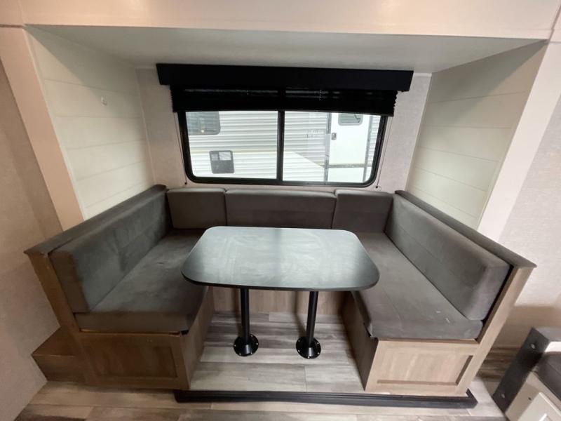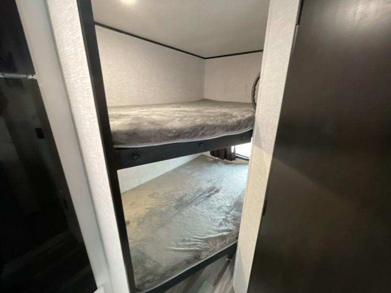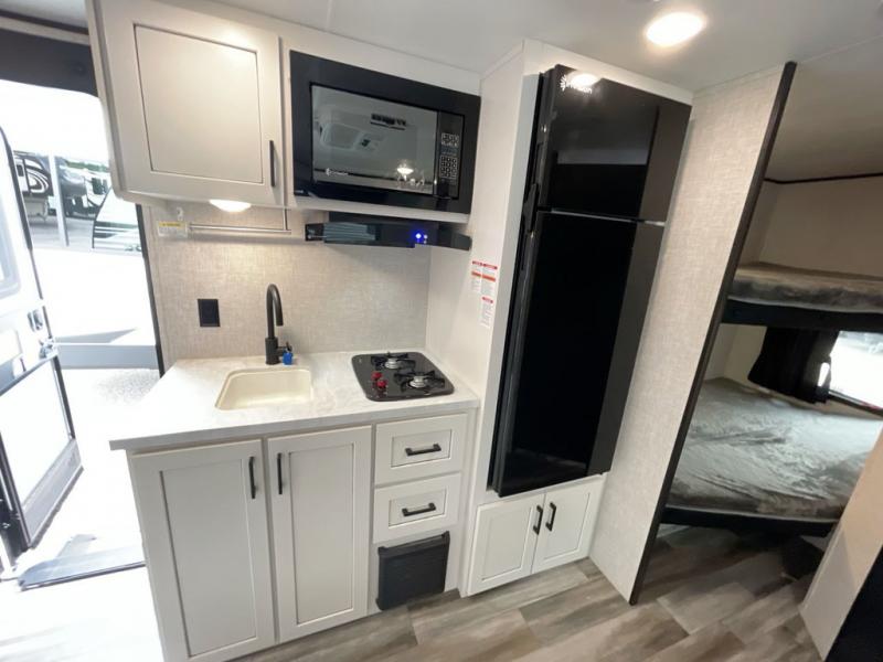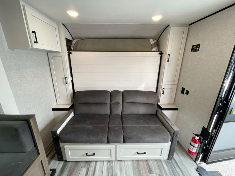 Any time spent in this travel trailer will be time well spent! You can easily sleep eight people each night thanks to the double-size bunks, front Murphy bed, and U-shaped dinette within the slide out. There is a full bath next to the bunks for easy nighttime use, and the linen closet will be perfect for clean towels. A cooktop, microwave oven, and 8 cu. ft. 12V refrigerator will let you cook and store food, and there is an overhead cabinet for spices or snacks! The optional STX Edition can be added on this model which includes 16 in. off-road tires, triple entry steps, a power tongue jack, and more!