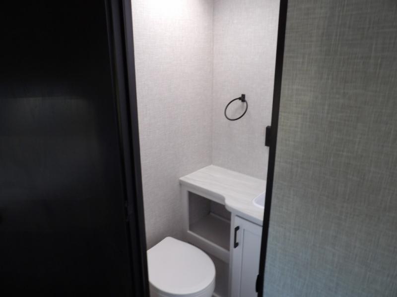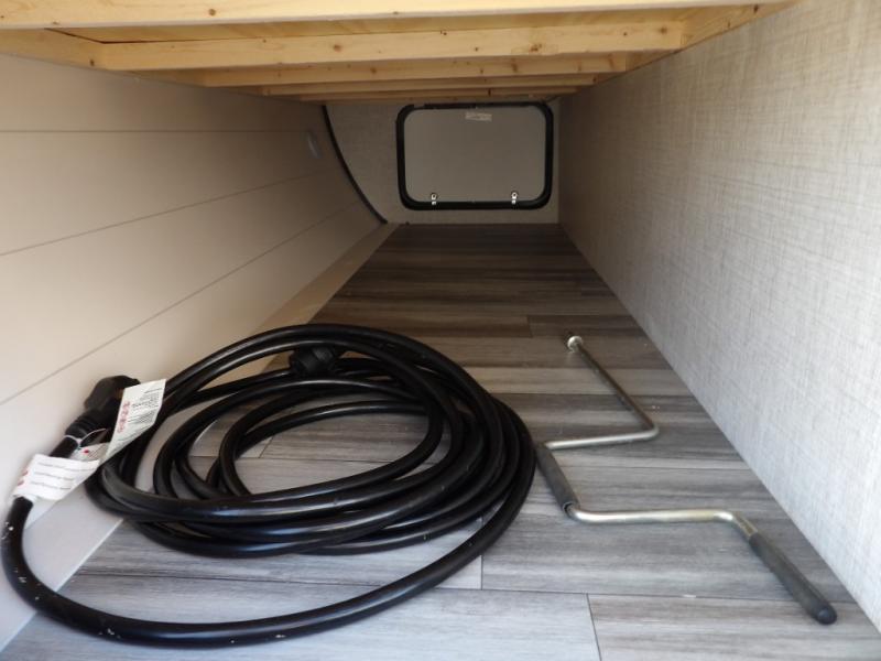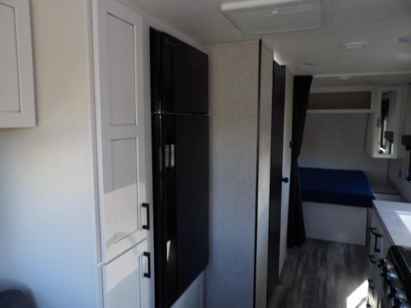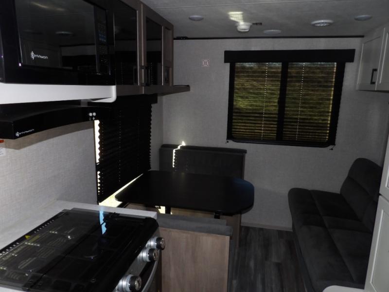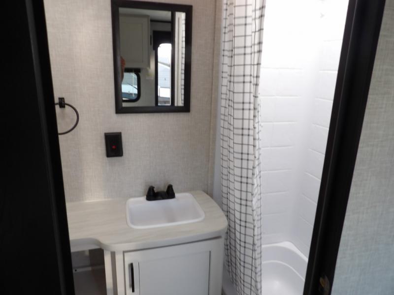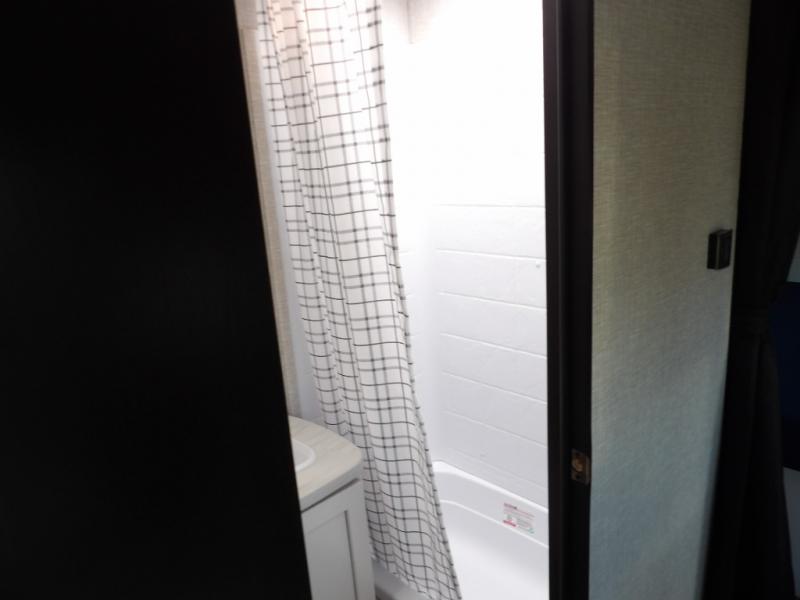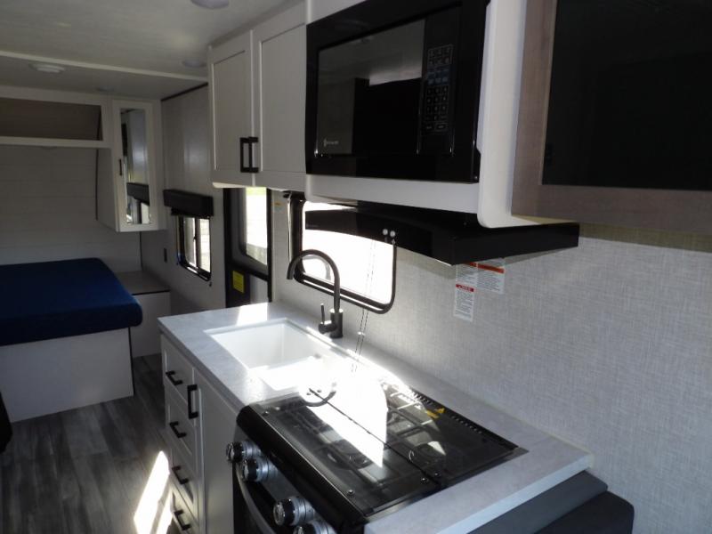 Camping in the woods is just what the doctor ordered and this trailer will provide all the interior comforts you need! There is a three burner cooktop and a microwave oven to prepare meals each day, plus an 8 cu. ft. 12V refrigerator for cold items. After your meal is made, you can dine at the booth dinette or relax on the jack-knife sofa, and these areas can become sleeping space for two to three guests at night. The full bath with a tub/shower means you won't have to use the camp's facilities and the 16' power awning will provide protection from the sun as you visit with other campers!