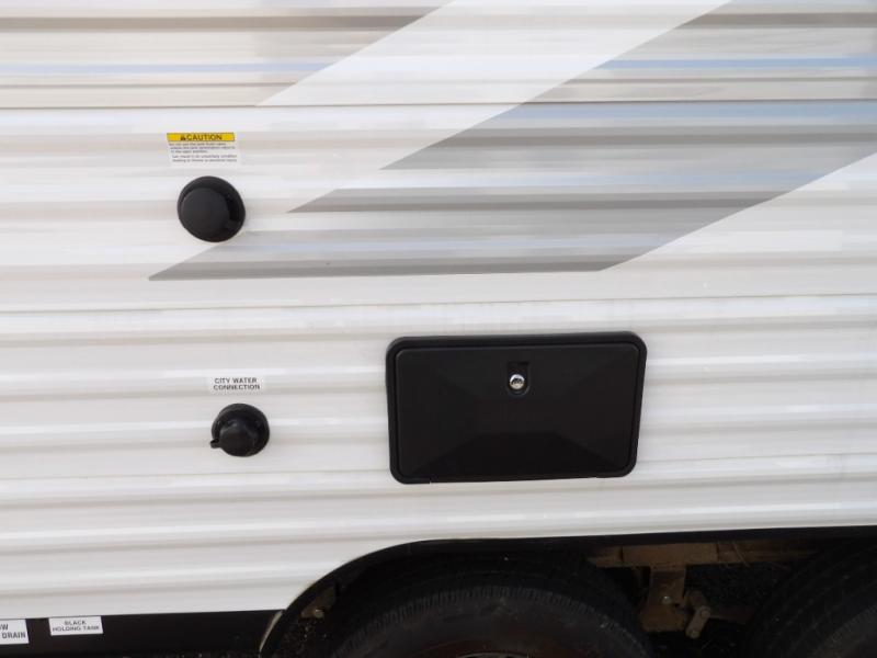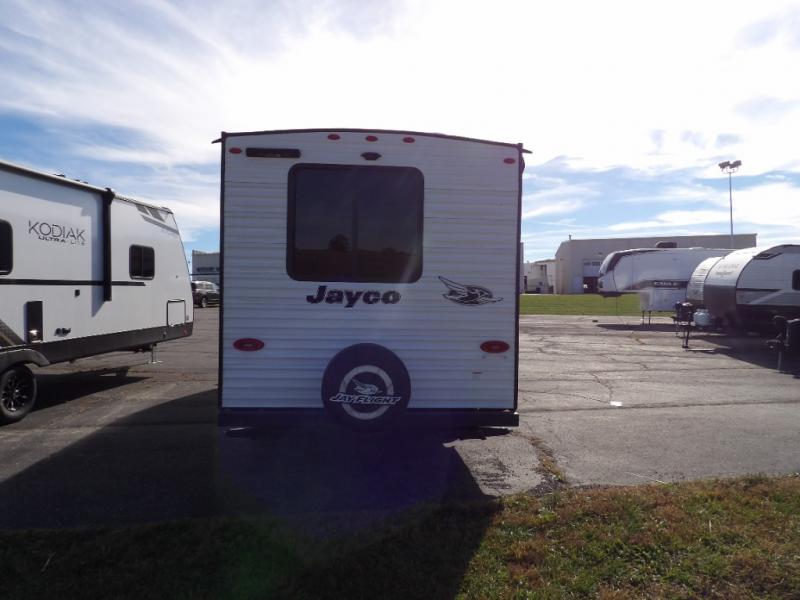 The Jayco Jay Flight SLX travel trailer is quite easy to own because it is lightweight for an easier towing experience. Built on a fully integrated A-frame with galvanized-steel, impact-resistant wheel wells, the Jay Flight SLX has quality at its very foundation. That quality continues on to the electric self-adjusting brakes, easy-lube hubs, Magnum Truss roof system, and LP quick connect. Some of what the mandatory Customer Value Package includes is backup camera prep, Keyed-Alike entry and baggage doors, marine grade exterior speakers, and an on-demand tankless water heater.