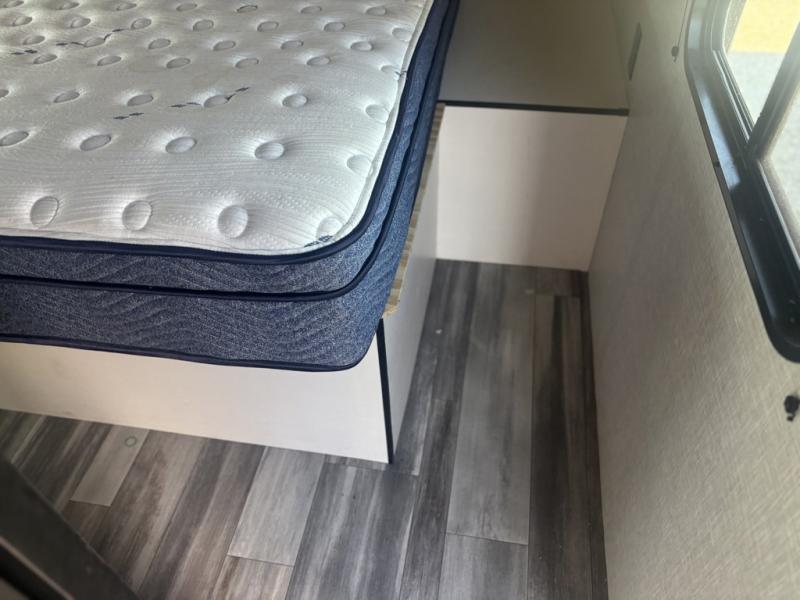 The Jayco Jay Flight SLX travel trailer is quite easy to own because it is lightweight for an easier towing experience. Built on a fully integrated A-frame with galvanized-steel, impact-resistant wheel wells, the Jay Flight SLX has quality at its very foundation. That quality continues on to the electric self-adjusting brakes, easy-lube hubs, Magnum Truss roof system, and LP quick connect. Some of what the mandatory Customer Value Package includes is backup camera prep, Keyed-Alike entry and baggage doors, marine grade exterior speakers, and an on-demand tankless water heater.