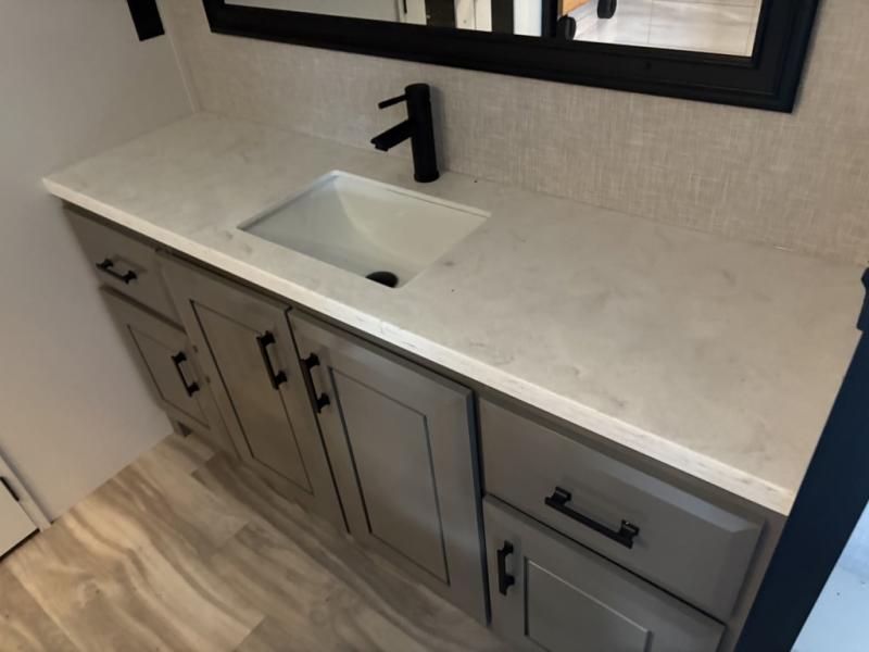 Each Pinnacle fifth wheel features Stronghold VBL lamination for the lightest, yet strongest construction in the RV industry. Add that to the Magnum Truss XL6 roof system and Climate Shield zero-degree tested weather protection and you'll be enjoying your fifth wheel for years to come. Some of the exterior conveniences you will appreciate are the Keyed-Alike lock system, the fully enclosed, universal docking center, and the 6-point hydraulic auto-leveling system for quick and easy set up. The 5 Star Handling Package will make towing a fifth wheel a walk in the park, and the two Whisper Quiet A/C units will keep you comfortable during the hot summer months. Inside, you'll enjoy the residential "Do it all" sink with pull-out kitchen faucet, glass rinse, and vegetable rinse, the handcrafted hardwood glazed cabinetry, the vinyl flooring throughout, plus many more comforts. There is even a central vacuum system, a wireless remote control system, USB ports throughout, plus many more conveniences to make each trip enjoyable.
