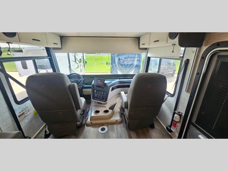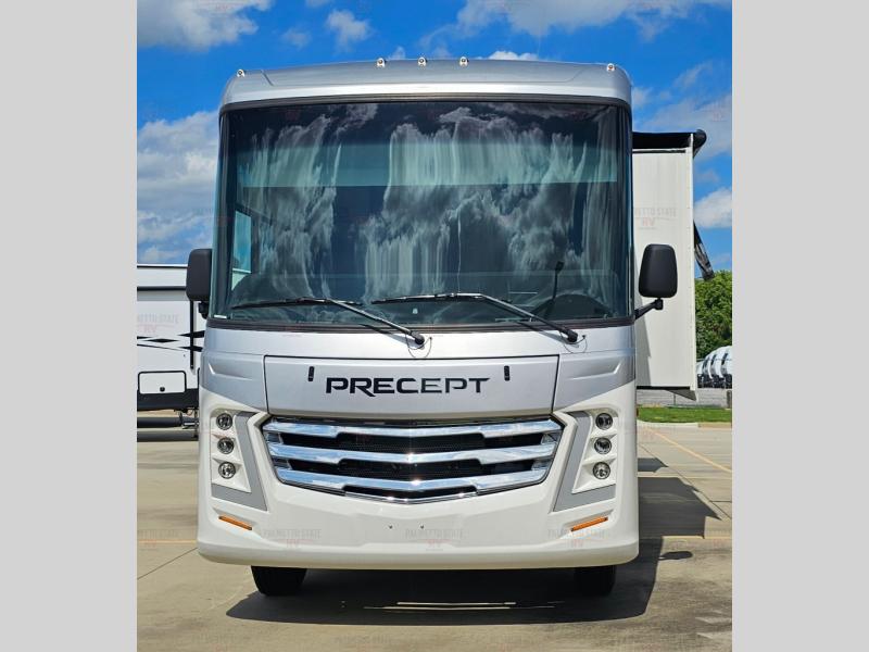 The Jayco Precept Class A gas motorhome comes with some features that you'll only find on a Jayco product, like the JRide Plus which offers you a powerful blend of precise handling and renowned stability on the road and the Firefly total coach control system which allows you to control your coach's operations from just about anywhere with your phone. You'll find two-point lap seatbelts in all designated seating locations, and the one-piece, seamless fiberglass front and rear caps resist wear and tear over the years. The Precept also offers you the lightest yet strongest construction in the industry with the Stronghold VBL lamination on the roof, floor, and sidewalls. You'll also be very pleased to find a 120" panoramic windshield, automatic hydraulic leveling jacks, and a 5,500W generator with auto-gen start.