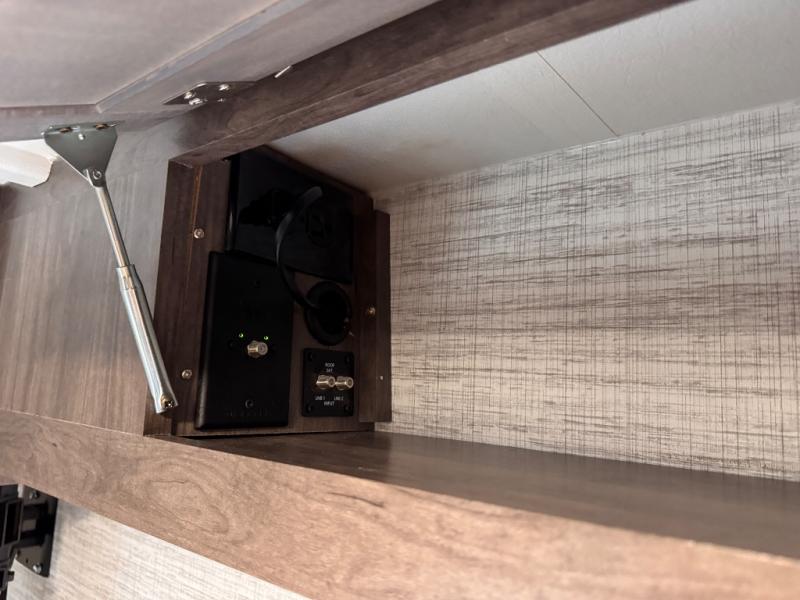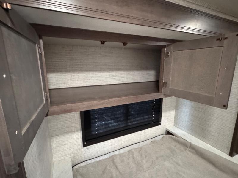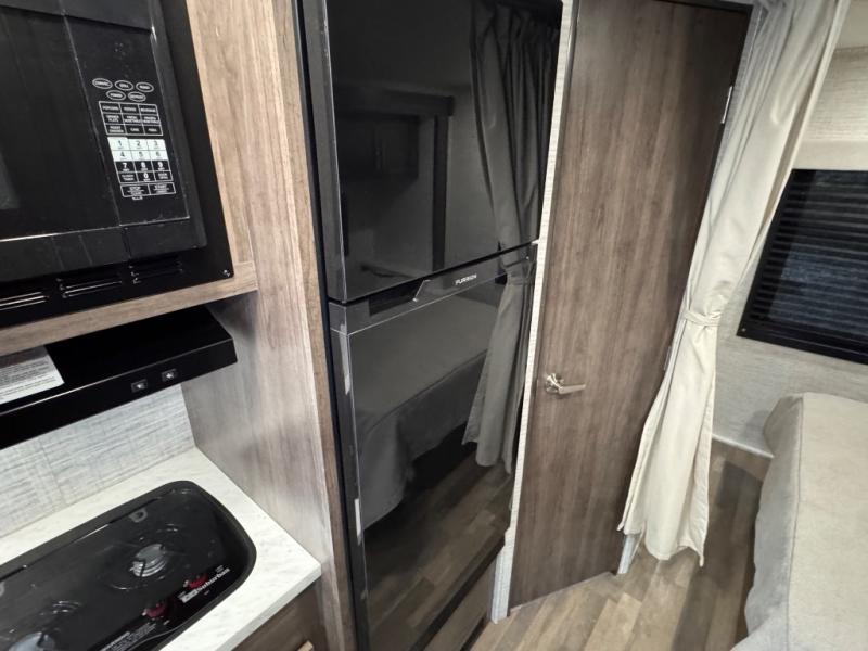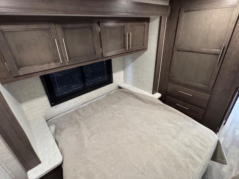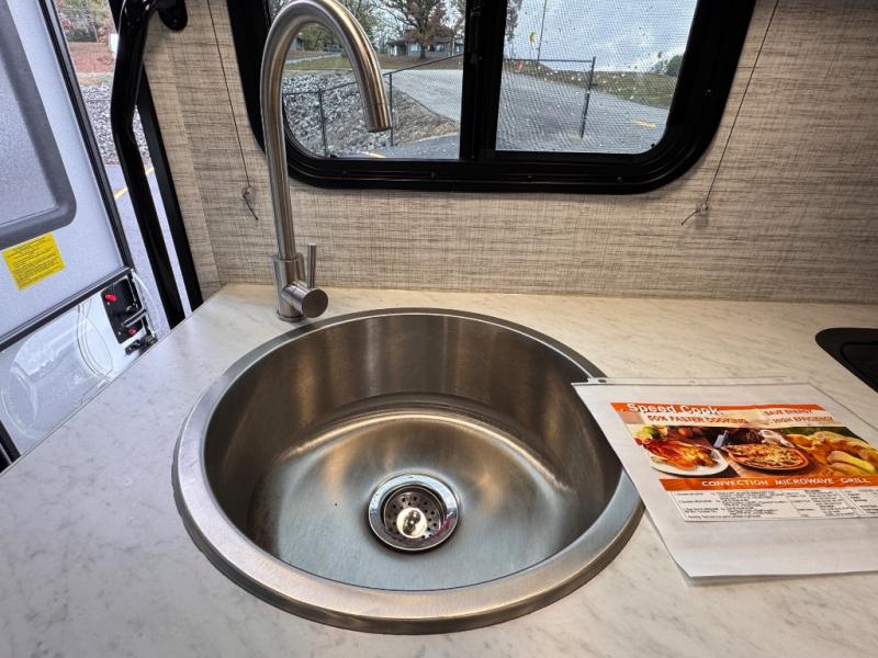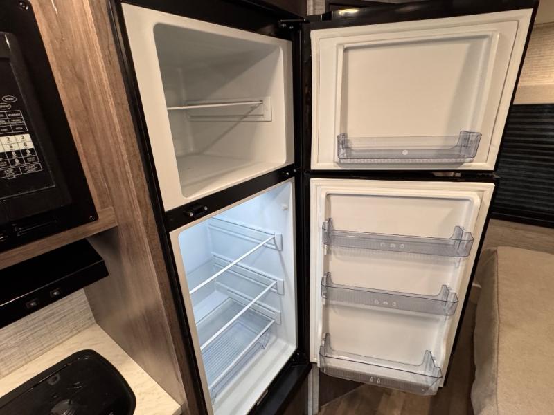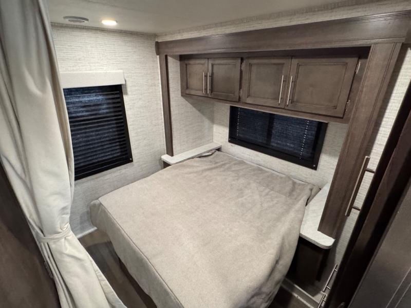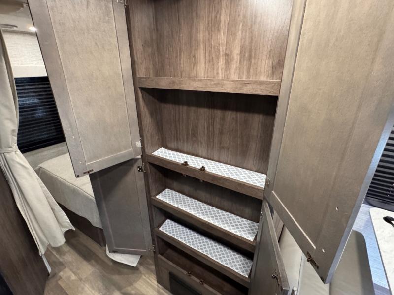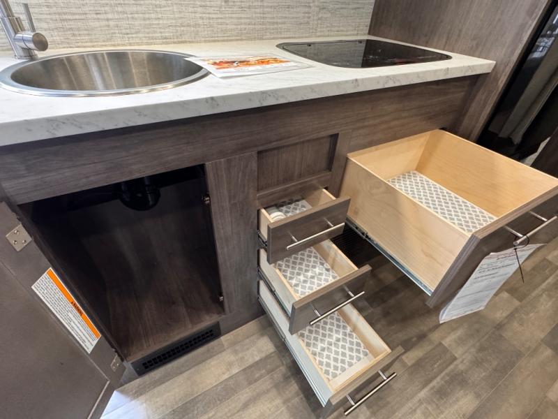 There's a comfortable place to sleep for everyone in this motorhome! From the corner 60" x 70" queen bed that slides out to the bunk over cab, and even the 42" x 70" booth dinette once converted. You can store your favorite snacks and hang up your clothes in the wardrobe/pantry. The chef can prepare delicious meals with the two burner cooktop and if there happens to be any leftovers then they can be stored in the 10 cu. ft. 12V refrigerator. The rear corner bathroom has a 24" x 36" shower that you are sure to enjoy after a long day of traveling!
