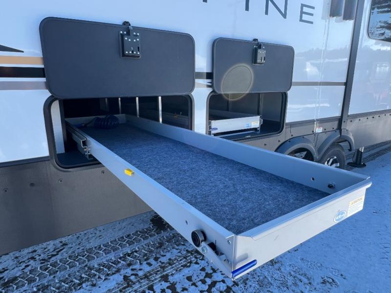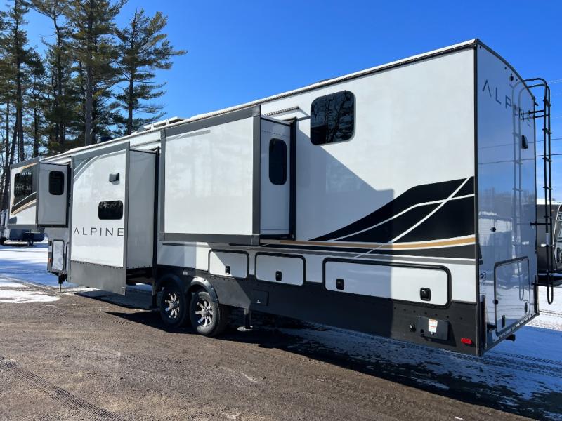 Luxury is not an option, it is a standard with each one of these Keystone RV Alpine fifth wheels! A 8' 4" wide body construction will create an open, residential feeling, and cutting-edge technology will provide a hassle-free camping experience. The Tru-Fit slide construction is more durable and minimizes motor structural stress, as well as resists leaking, and the Blade Pure airflow system provides residential comfort with its high-performance. Each fifth wheel includes designer flooring throughout, stunning solid wood cabinet doors, luxurious crown molding, and solid surface countertops in the kitchen. The exterior also includes an outside shower with hot and cold water, Lippert strut assisted SolidSteps, Hitch Vision with LED lighting, and many more conveniences!