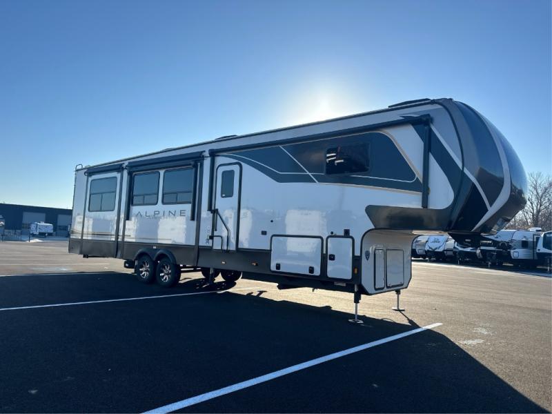 With any Keystone luxury Alpine Avalanche Edition fifth wheel, you will experience wide-body construction that allows you to stretch out and stay awhile during any season thanks to the Polar Pack All Season Protection that includes a heated and enclosed underbelly, an Astro foil reflective layer on the roof, front and rear walls, and two static attic vents, plus more! The interior offers hardwood slide out fascia with wood accents, crown molding, plus your choice of modern interior design. There are many more Keystone exclusives, like the Tru-Fit slide construction, the in-floor heating ducts, KeyTV™, and much more to bring you a full-packed, luxury fifth wheel!