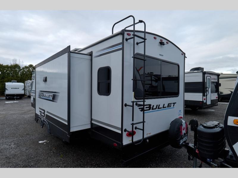 The Bullet Crossfire by Keystone are the perfect lightweight travel travel for rookie campers to seasoned RVers! Each one is built with a one-piece polypropylene underbelly, a fully walkable roof, and a high impact thermoset resin painted front cap for added durability. There is also a Dexter Torsion axle rubber ride suspension and Goodyear Endurance tires for a smooth tow plus a power tongue jack and power stabilizer jacks for easy set up. The interior will have you feeling right at home with deluxe night shades, updated Tranquil Timber decor, residential Beauflor vinyl flooring, and seamless kitchen countertops.