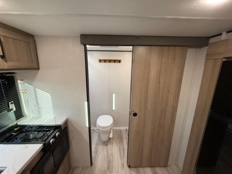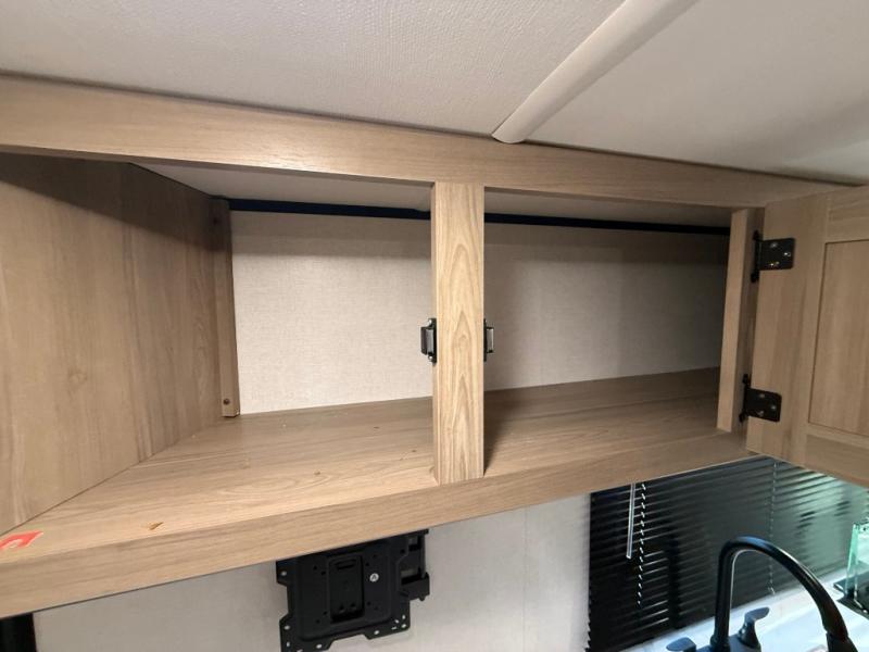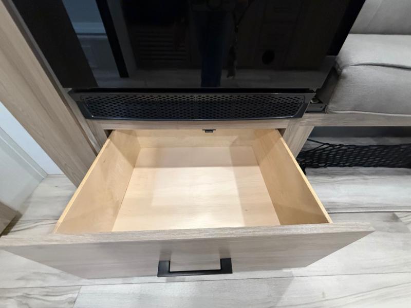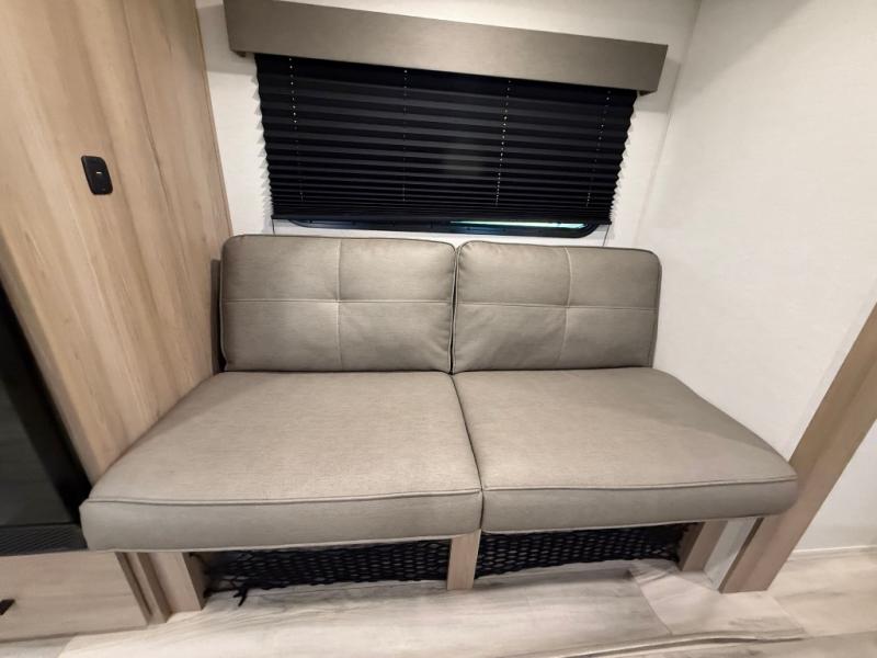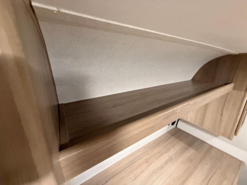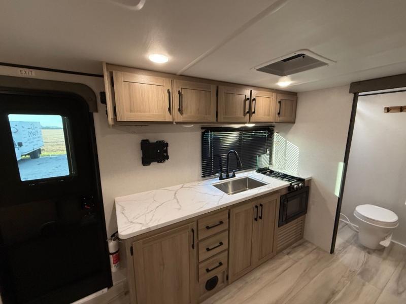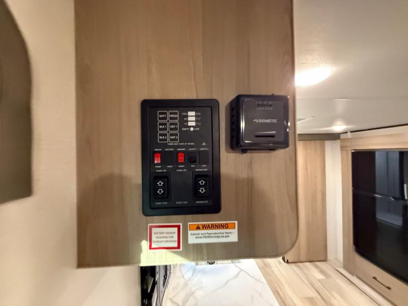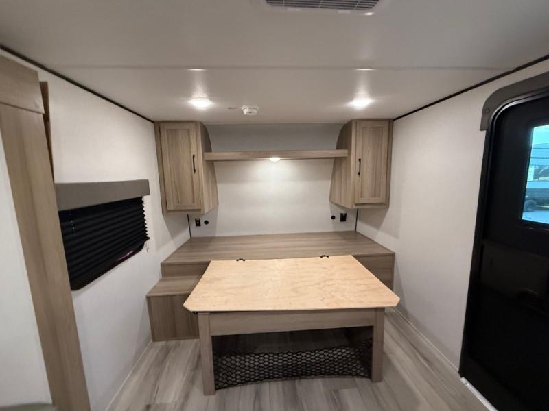 You'll love every minute spent in this single slide out, couple's trailer. There is a front bedroom with a queen bed and dual bedside wardrobes to keep your things tidy, plus a full rear bath to easily clean up each day. A jack knife sofa with a removable table will provide a place to dine, relax, and even let a guest or two little ones sleep at night. You'll find ample counter space in the kitchen to prep meals, along with a two burner range, a microwave oven, and an 8 cu. ft. 12V refrigerator for food storage. Outside, a 14' power awning will provide some much needed shade, and a pass-through storage will keep your fishing poles organized!