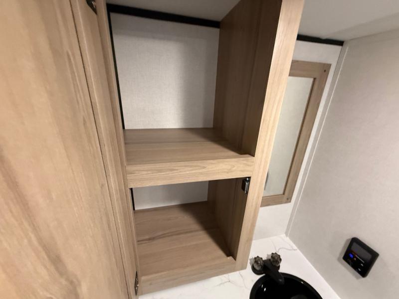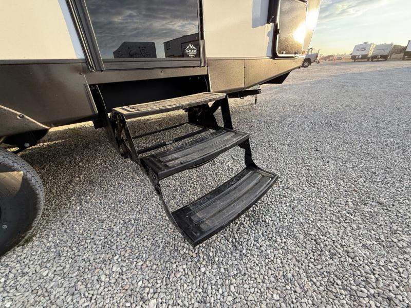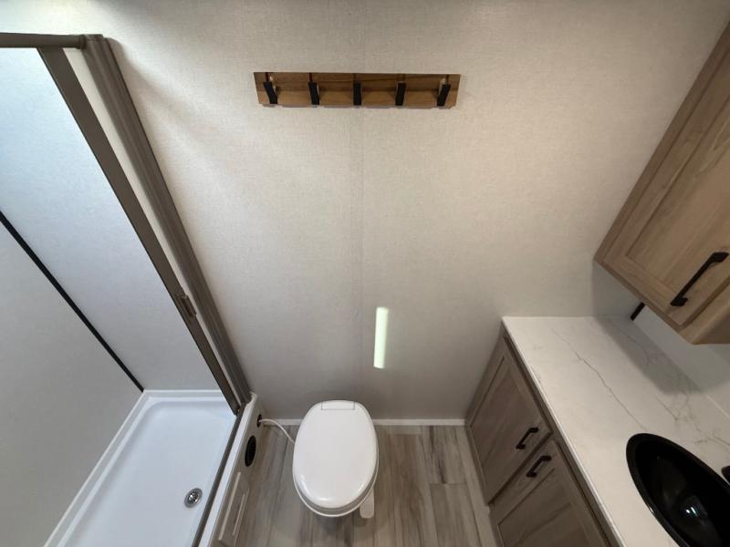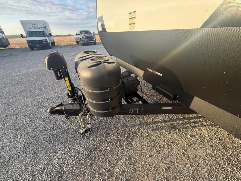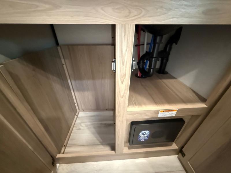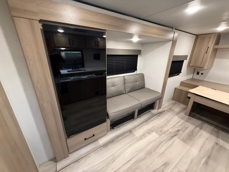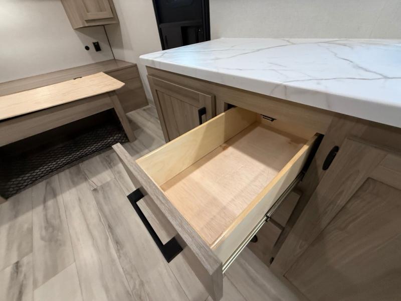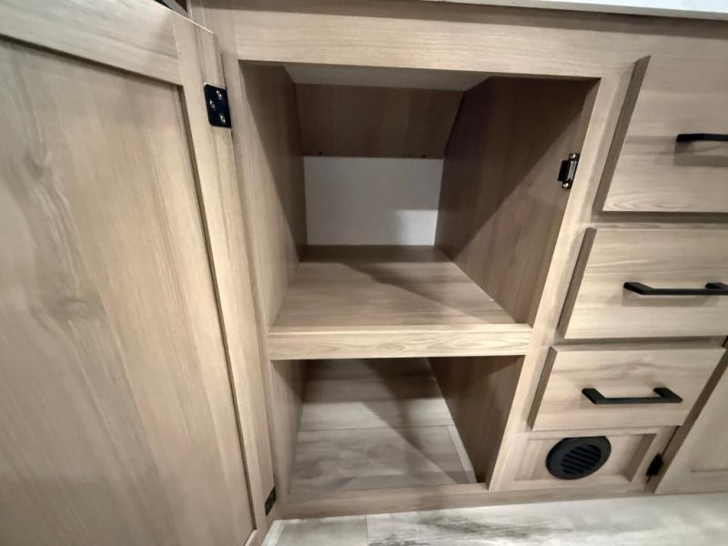 You'll love every minute spent in this single slide out, couple's trailer. There is a front bedroom with a queen bed and dual bedside wardrobes to keep your things tidy, plus a full rear bath to easily clean up each day. A jack knife sofa with a removable table will provide a place to dine, relax, and even let a guest or two little ones sleep at night. You'll find ample counter space in the kitchen to prep meals, along with a two burner range, a microwave oven, and an 8 cu. ft. 12V refrigerator for food storage. Outside, a 14' power awning will provide some much needed shade, and a pass-through storage will keep your fishing poles organized!