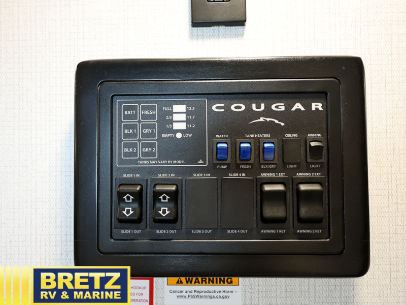 The Keystone Cougar Half-Ton fifth wheel and travel trailers are known as one of America's favorites for a reason! Some of those reasons are the exclusive features that come from Keystone, like the Winegard Air 360+ omni-directional rooftop antenna, the in-floor heating ducts, and the Hyper Deck flooring. The Cougar Half-Ton has a Climate Guard protection package to keep you safe during inclement weather, along with two roof attic vents, PEX plumbing and more. Use the 17" Furrion range with Piezo ignition to create all of those familiar meals from home, and enjoy endless hot showers with the Girard tankless on-demand water heater!