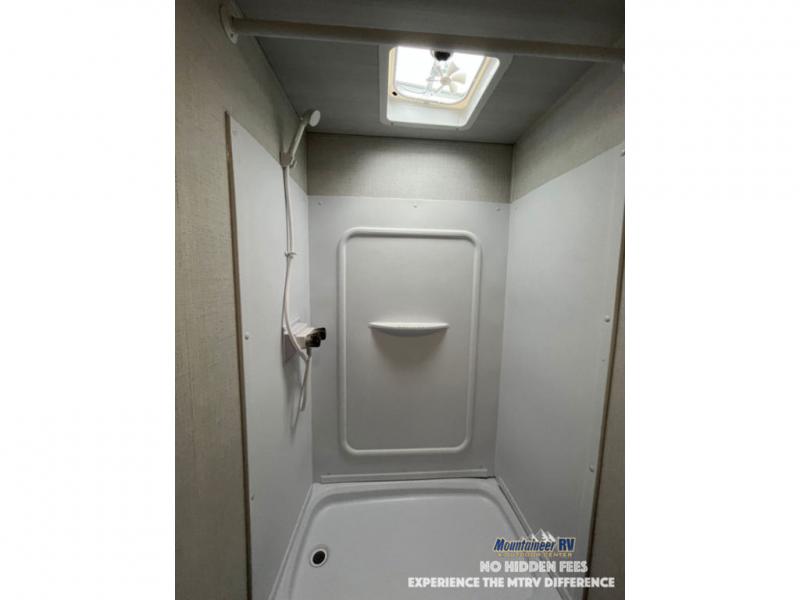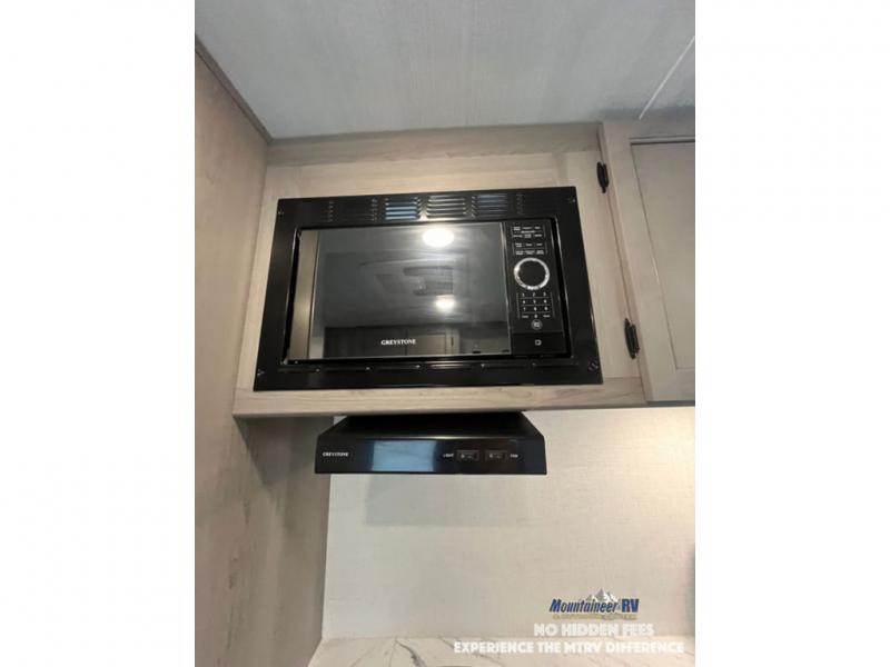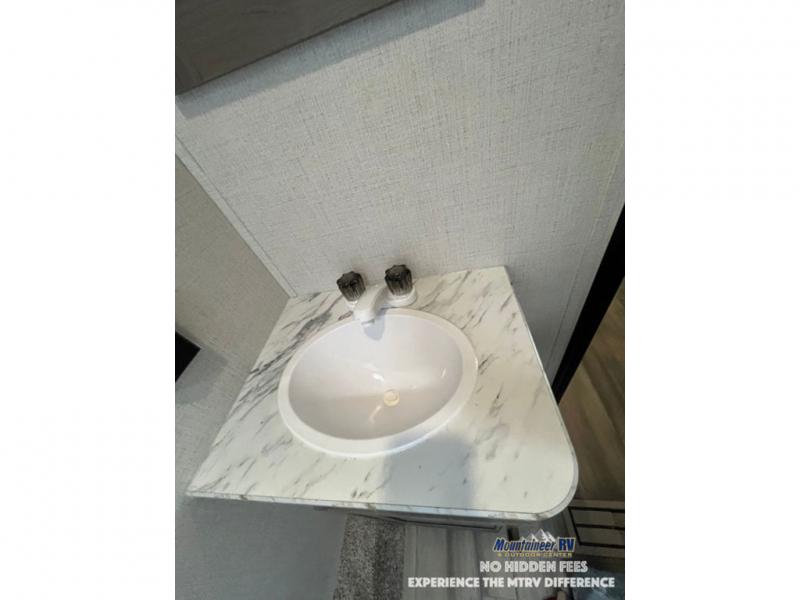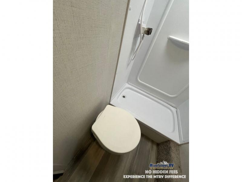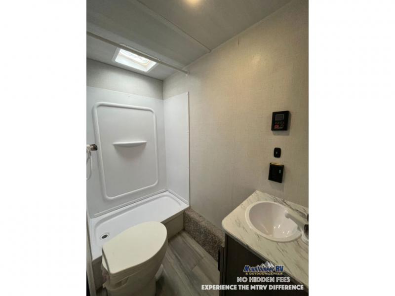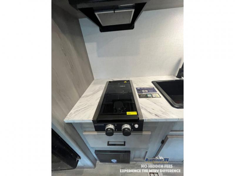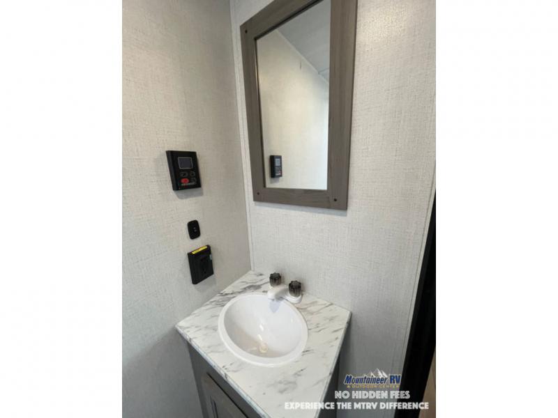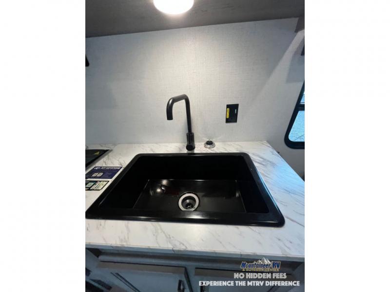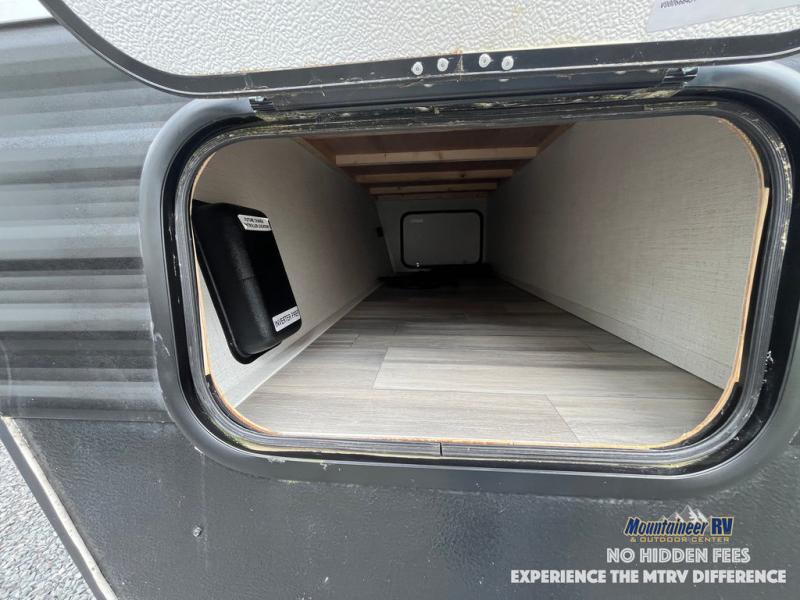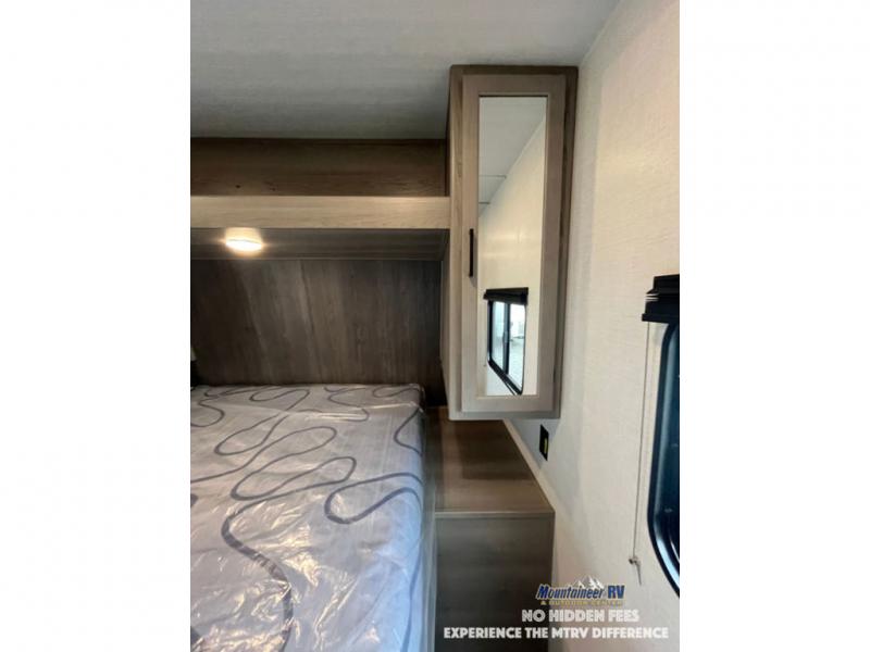If you're looking for a travel trailer with a little more sleeping space, look no further than this unit! There are double-size bunks with inside and outside storage, a walk-around queen bed in the front bedroom, plus a sofa and booth dinette for even more sleeping space. The kitchen comes with a cooktop to cook meals on, a sink for clean up, and a 10 cu. ft. 12V refrigerator to store the milk and eggs. You will also find TV prep in this model if you enjoy movie nights while at the campground.