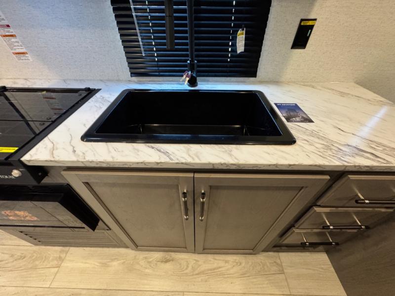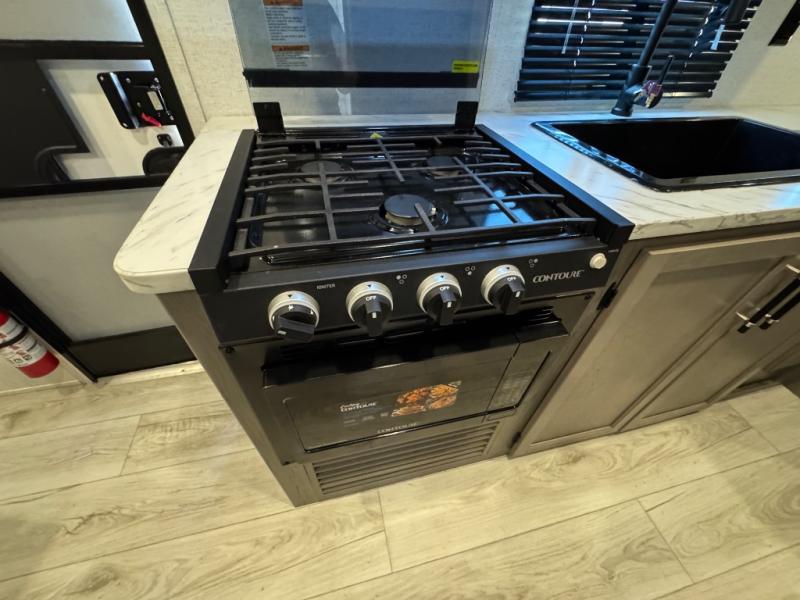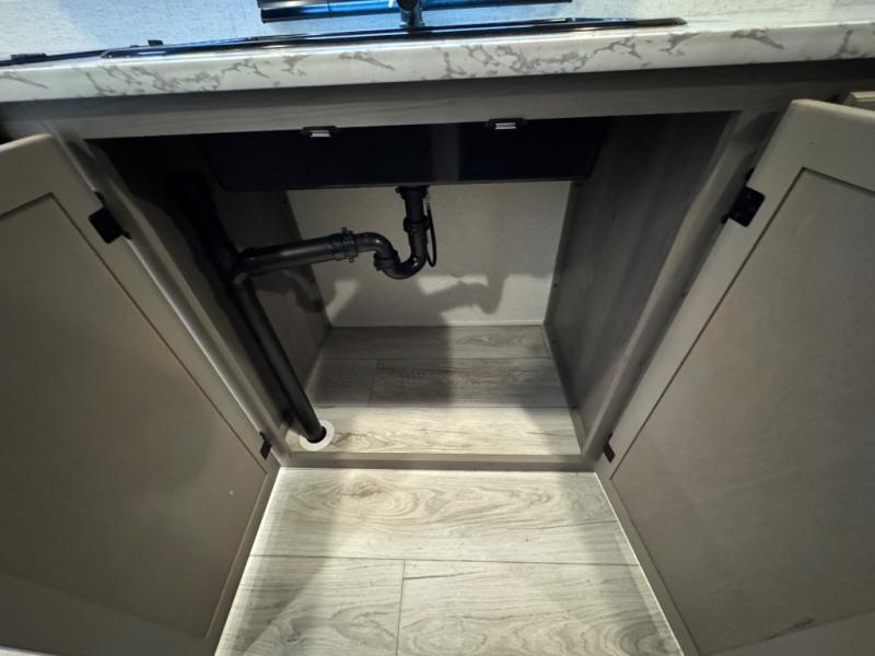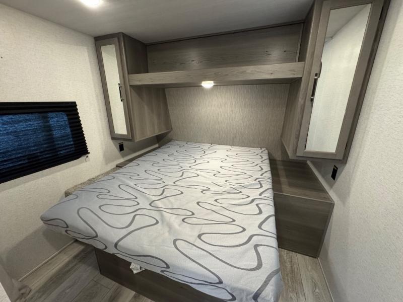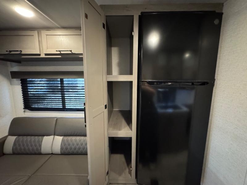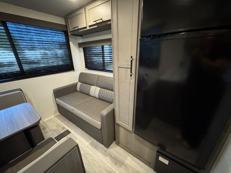 This is the perfect starter travel trailer since it includes everything you need while you're away from home. You'll enjoy the queen bed up front with underbed storage and nightstands for your things, plus a full bath on board so you won't have to use the camp's facilities. This model includes a cooktop that will allow you to cook meals each day, and there is a pantry and a 10 cu. ft. 12V refrigerator for food storage! A booth dinette in the back provides a place to dine and the sofa will be perfect to relax on after a day outdoors. And these pieces of furniture can double as your guests sleeping space at night!