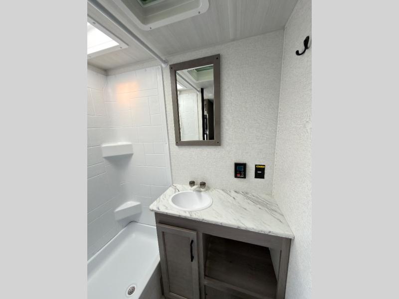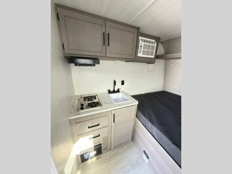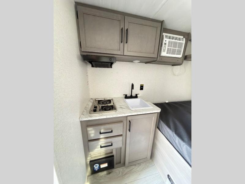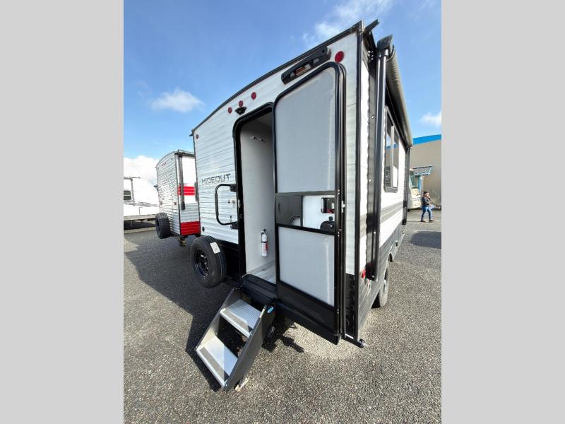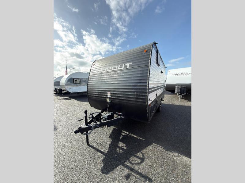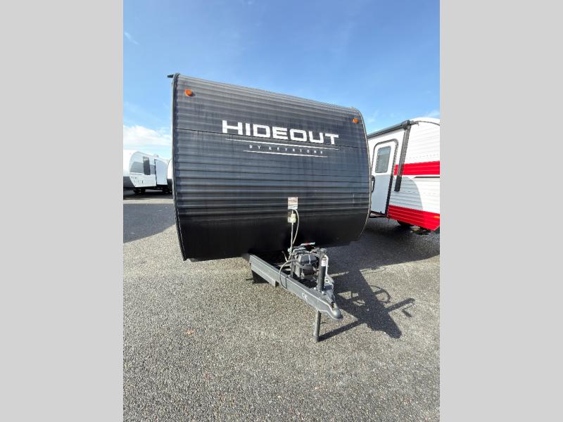Open your horizons with the Hideout Sport Single Axle travel trailers by Keystone. They are compact, convenient, and lightweight; everything you're looking for in an RV! Each model features an aluminum exterior, tinted safety glass windows, and a Super Flex TPO roof membrane for added durability. The interior includes blackout night shades for added privacy and solid wood doors and drawers that will give a more at-home touch. The Girard tankless water heater is a feature you won't want to camp without, and the LED lighting will keep your space bright and open!