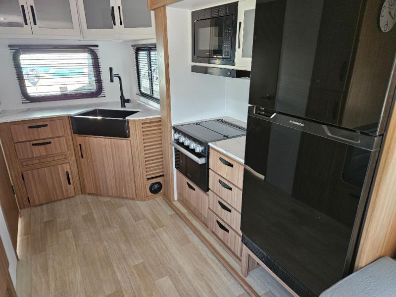 With any Keystone Passport SL you will enjoy lightweight towing and lots of interior comforts! The power tongue jack lets you hitch up at the drop of a hat, and the Dexter torsion axle rubber ride suspension will make towing easier than ever. You will appreciate having power stabilizer jacks for quick setup and an exterior convenience center to monitor tank levels. These trailers are constructed with a seamless, laminated and gel-coated filon exterior, 80% tinted safety glass windows, and a one-piece polypropylene underbelly. The interior will have you feeling right at home with residential durable Beauflor vinyl flooring, deluxe night shades, LED lighting throughout, and seamless kitchen countertops to name a few comforts.