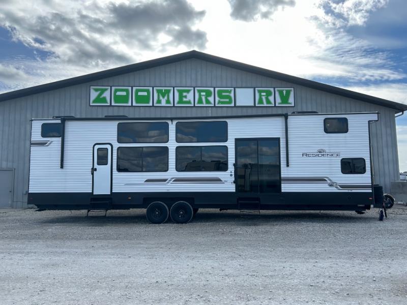 Each Residence destination trailer by Keystone offers sliding glass door providing easier access, more natural lighting, great views and fresh air when you want to leave the door open. The 8' interior height gives you taller ceilings with an open feel. Some other highlights include pre-drilled/screwed hardwood cabinet framing with easy-glide doors and waste basket storage, solid hardwood cabinetry, stainless steel undermount sink , in-floor heating ducts and Tru-fit slide construction. The heated and enclosed underbelly will allow you to take up residence all year long, and you'll also find a power awning with LED lights outside, as well as Dexter E-Z lube axles for smooth towing. Plus, if are looking for a smooth-sided laminated construction, you will love the laminated sidewalls!