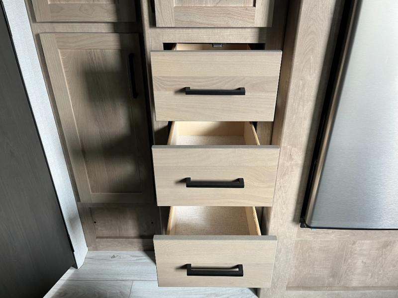 Booth Dinette • Bunk Beds • Full Bathroom • Spacious Storage • Efficient Kitchen Layout • Easy Tow Design