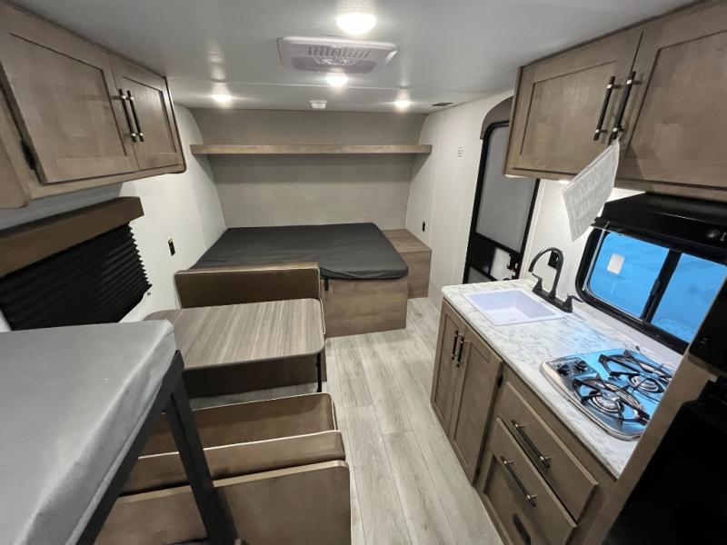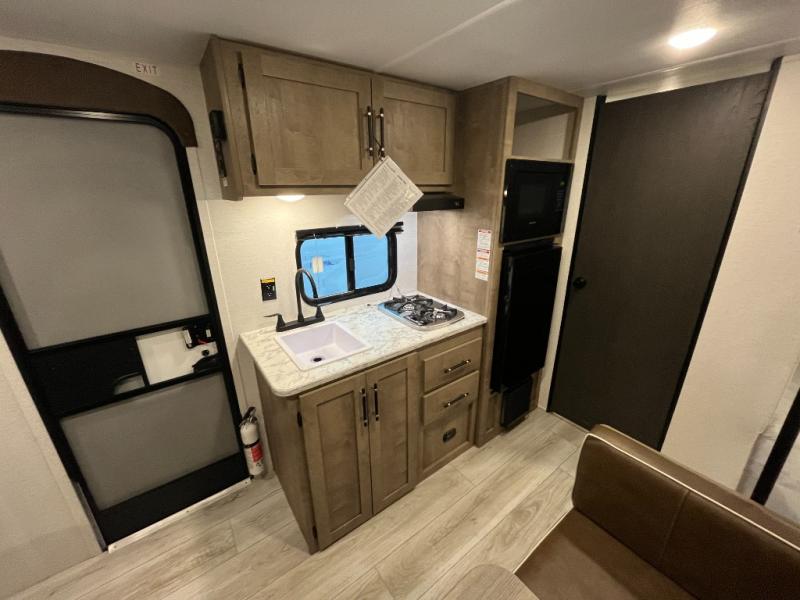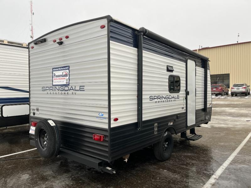 With any Springdale Classic Mini travel trailer by Keystone, you will enjoy lightweight towing thanks to their single-axle! You'll find the XL entry assist handle will make entering and exiting your unit easier than ever, and the power awning will provide protection from the sun as you relax in your camp chairs outside. Each model includes blackout night shades, solid wood cabinet doors and drawers, a shower skylight for more standing room, plus many more interior comforts. There is also a 5,000 BTU sidewall A/C and 20K BTU furnace to keep you comfortable, plus a Girard tankless water heater for endless hot showers!