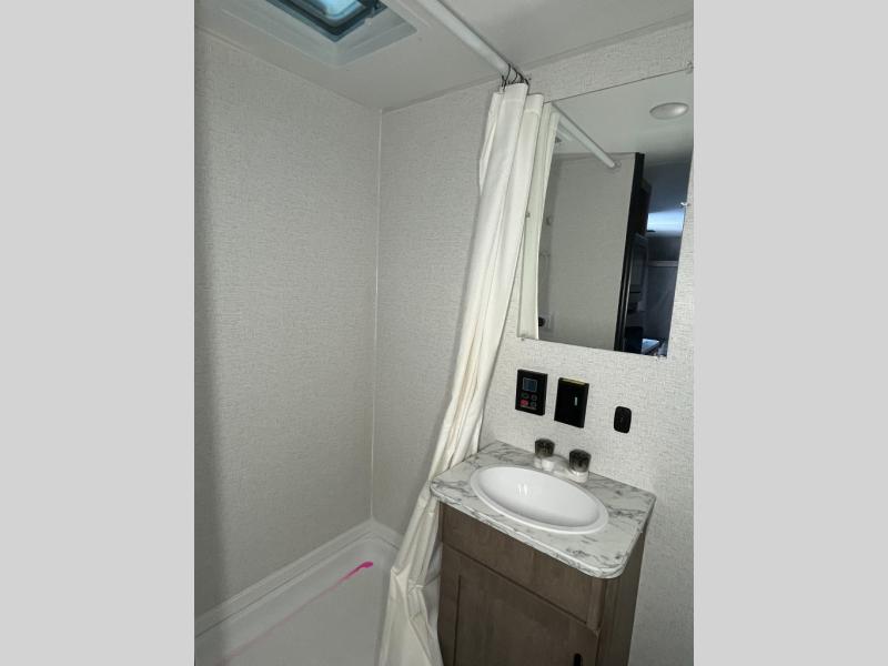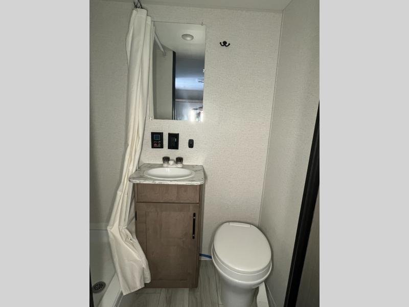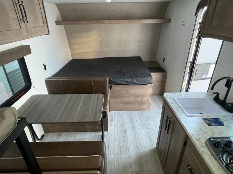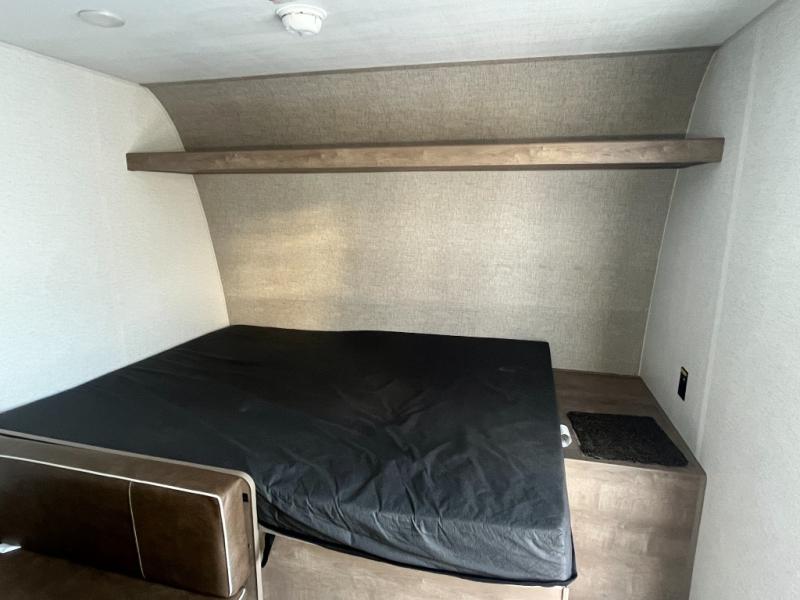 Get ready for outdoor fun with your favorite people when you have this trailer in tow! Once at your campsite, you can easily setup the 10' power awning, grab your camping chairs from the pass-thru storage, and relax or start playing. The cook will love the galley kitchen with the two burner cooktop, plus a refrigerator for cold items. If you like, you can eat inside at the booth dinette which doubles as sleeping space, and of course the kids will love the bunk beds next to the full bathroom. And you will sleep soundly on the front queen bed.