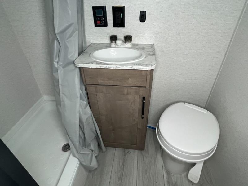 Get ready for outdoor fun with your favorite people when you have this trailer in tow! Once at your campsite, you can easily setup the 10' power awning, grab your camping chairs from the pass-thru storage, and relax or start playing. The cook will love the galley kitchen with the two burner cooktop, plus a refrigerator for cold items. If you like, you can eat inside at the booth dinette which doubles as sleeping space, and of course the kids will love the bunk beds next to the full bathroom. And you will sleep soundly on the front queen bed.