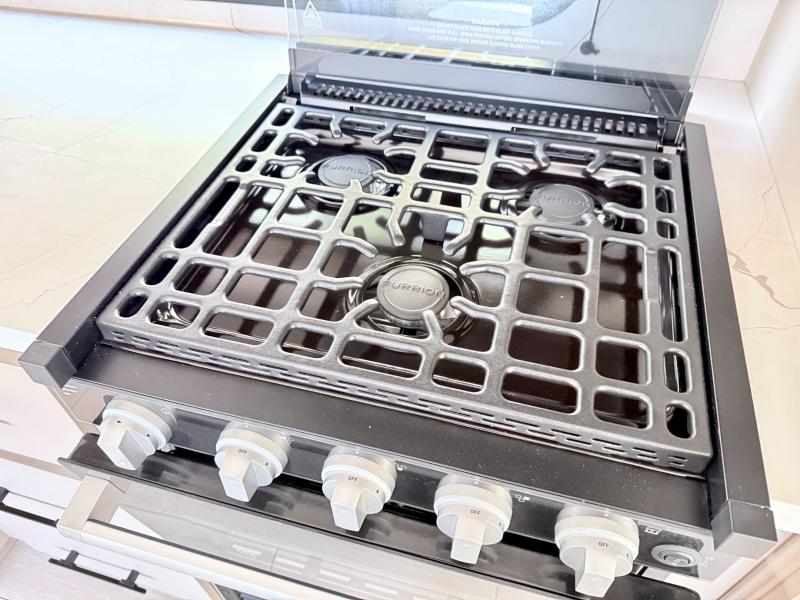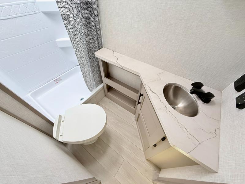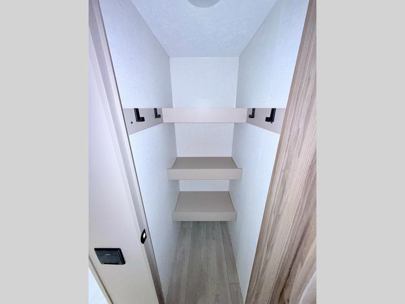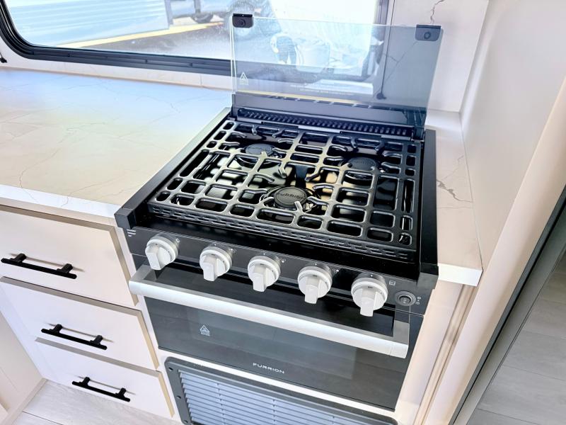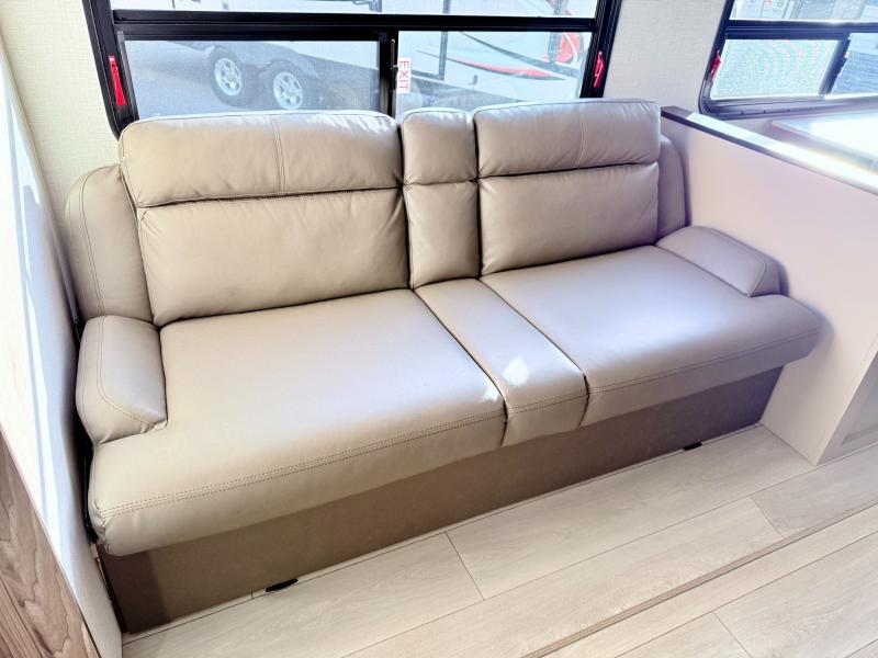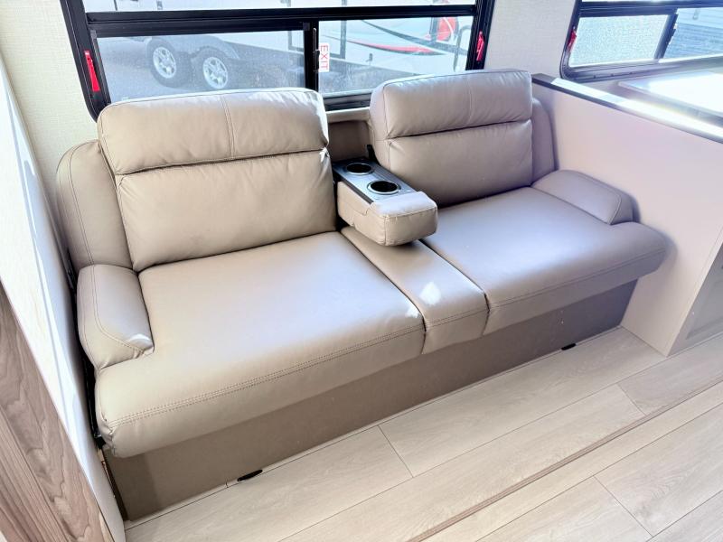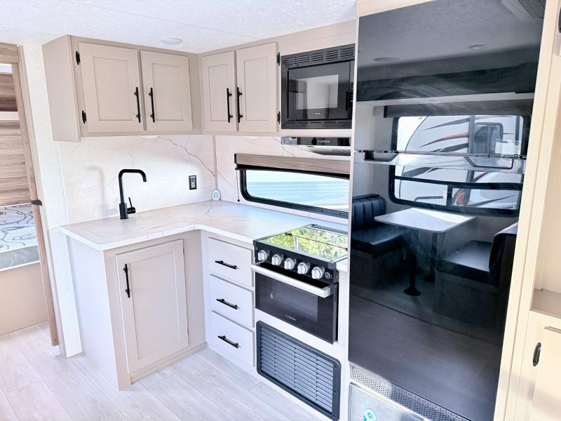 Headed to the RV park with your family and friends? Want enough space to allow overnight guests to stay the night on occasion? This trailer gives you double-size bunks, a 70" sofa and a booth dinette that offer extra sleeping space while you enjoy your own walk-around queen bed in the front private bedroom. You will also have dual wardrobes, and a TV mount to add your own TV. Everyone will stay refreshed and cleaned using the rear corner full bathroom, and fed by the cook that has an inside kitchen with full amenities including an L-shaped counter and a large sink. There is also a walk-in pantry with coat hooks next to the entry to utilize as a multi-purpose closet. And there is an outside kitchen with a griddle and a refrigerator, a 20' power awning with an LED light strip, and a pass-through storage for the larger camping items.