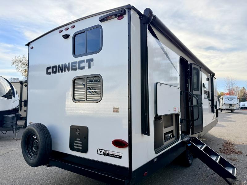 Each Connect SE travel trailer by KZ includes an NXG frame, which is a high quality, highly engineered frame that provides a lightweight yet strong foundation for your RV. The Climate package provides added insulation to extend your camping season year-round with a fully enclosed, insulated and heated underbelly to protect the tanks and pipes. Some top features include the 17-inch range with illuminated control knobs, the seamless countertops with a deep undermount stainless steel kitchen sink including a sink cover for added countertop space, and a black high-rise faucet. You will also enjoy the KZ Engage that is powered by OneControl to monitor and control the battery levels, the slide(s), the leveling system, the awning(s), plus the inside and outside lighting. Choose your favorite today!